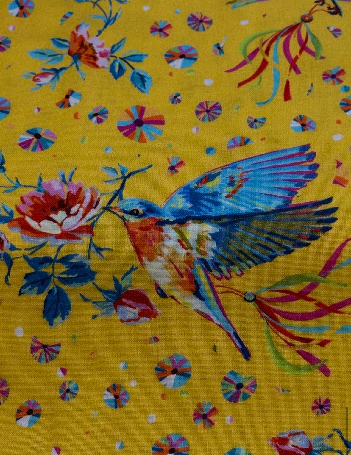 Fabric - Birds, Animals & Insects - (3477) Birds & Flowers on Bright Yellow is backordered and will ship as soon as it is back in stock.
