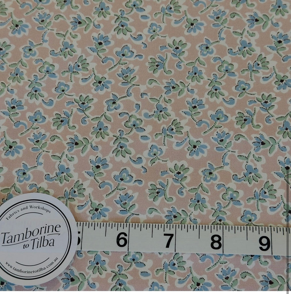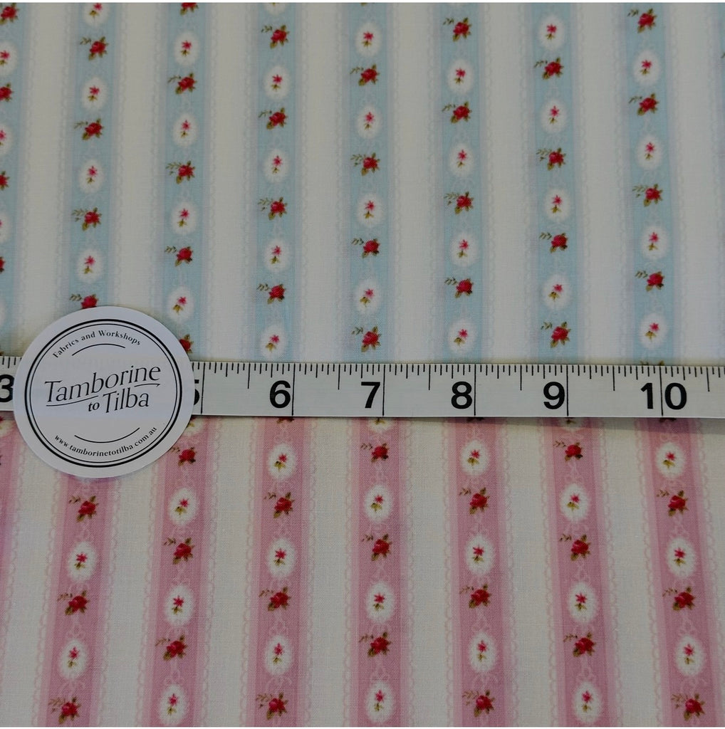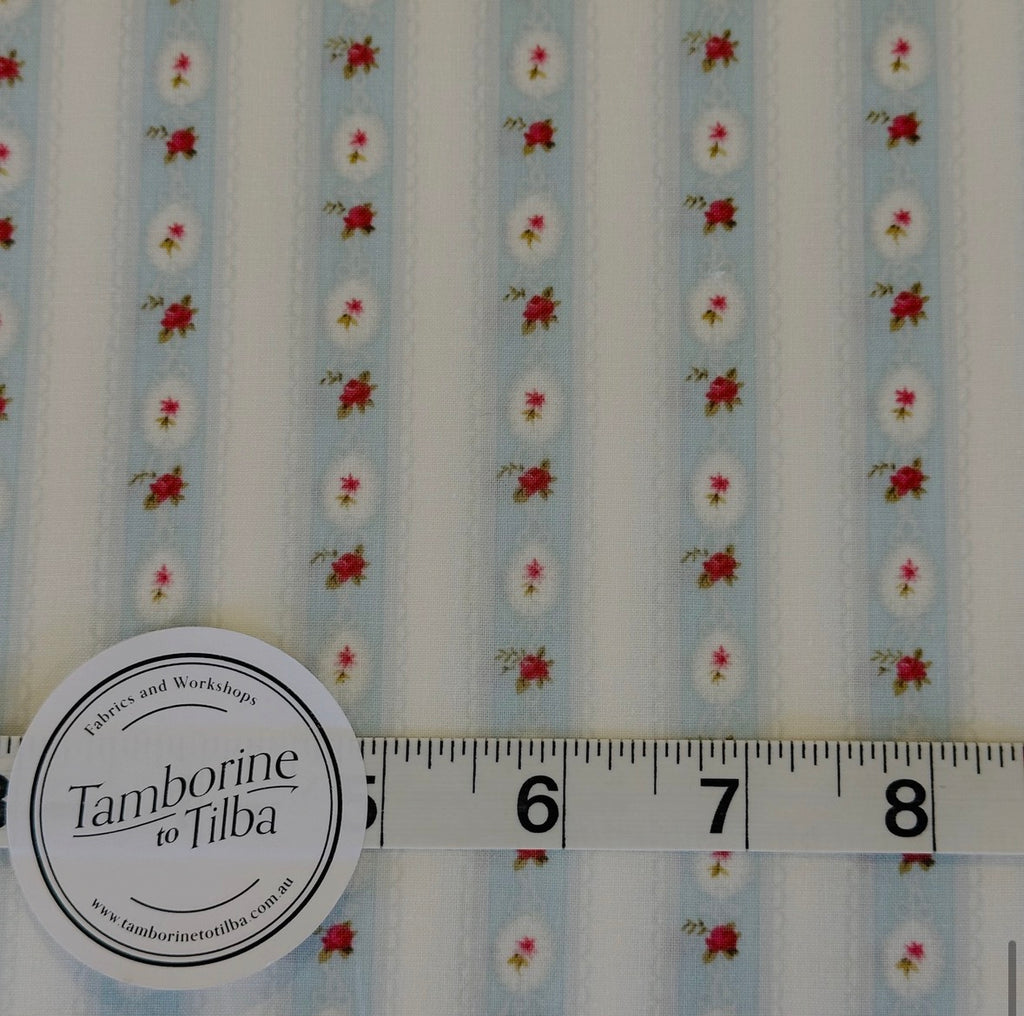 Fabric - Stripes - (3470) Blue & Vanilla Floral Stripe
