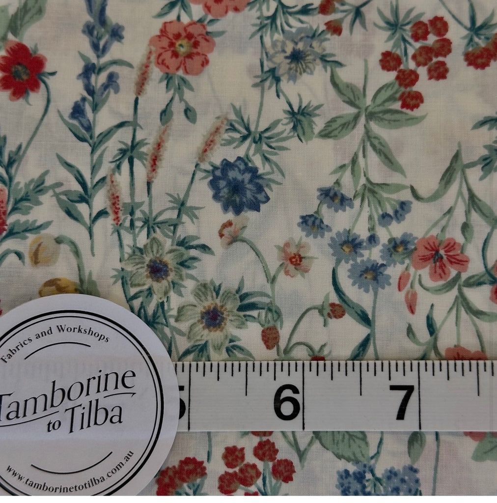 Fabric - Floral - (3471) Pretty Soft Coloured Floral Voile on Vanilla