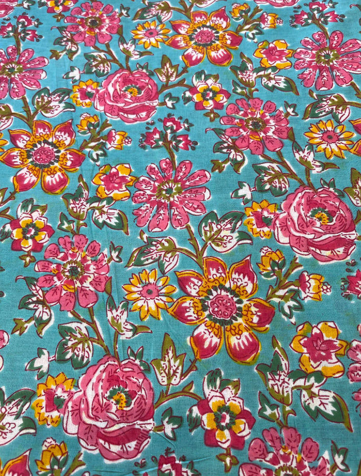 Fabric - Quilt Backs (109) - Pink, Green & Yellow Floral on Deep Aqua