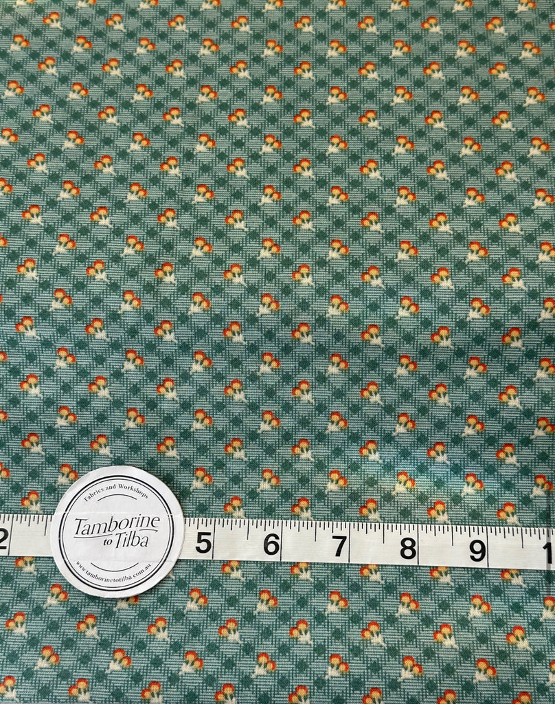 Fabric - Reproduction - (2967) Orange & Gold Berries on Teal & Duckegg Check