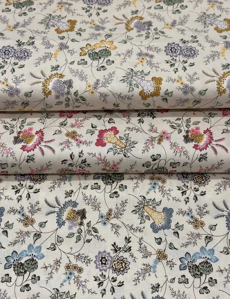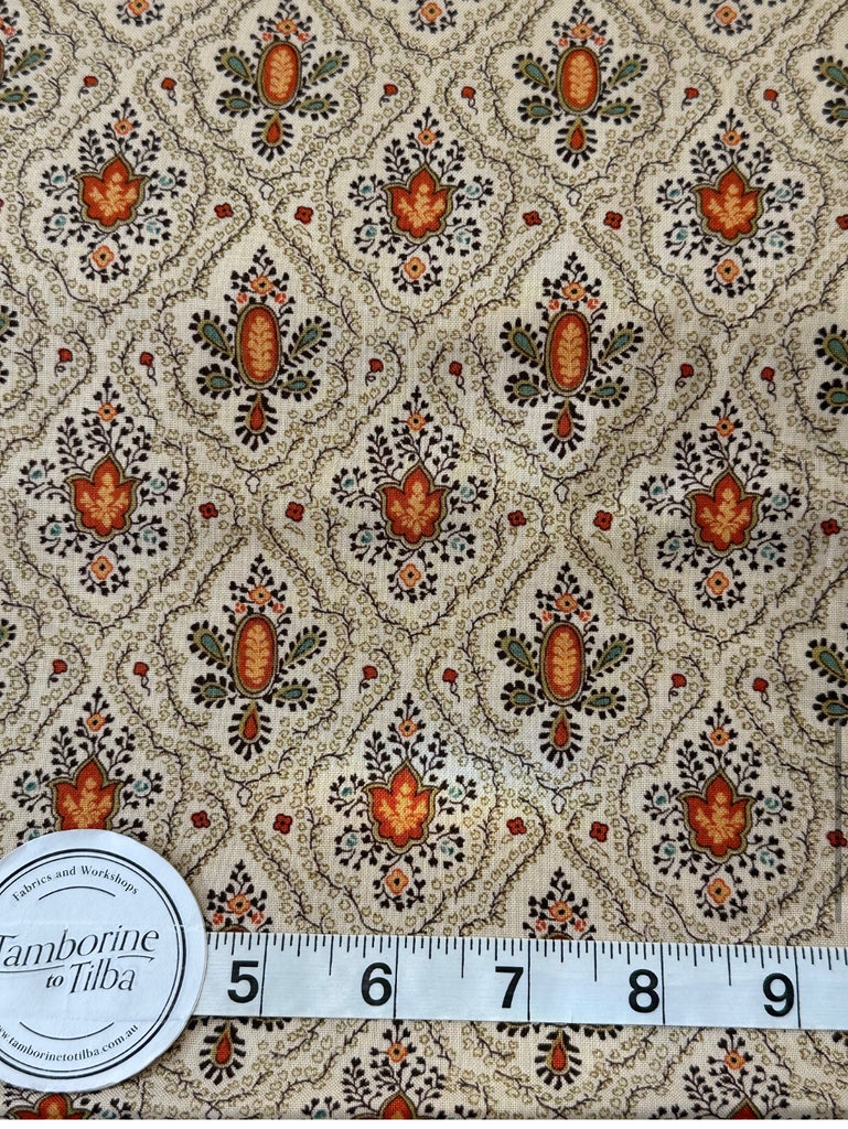 Fabric - Reproduction - (2966) Floral Medallions on Cream