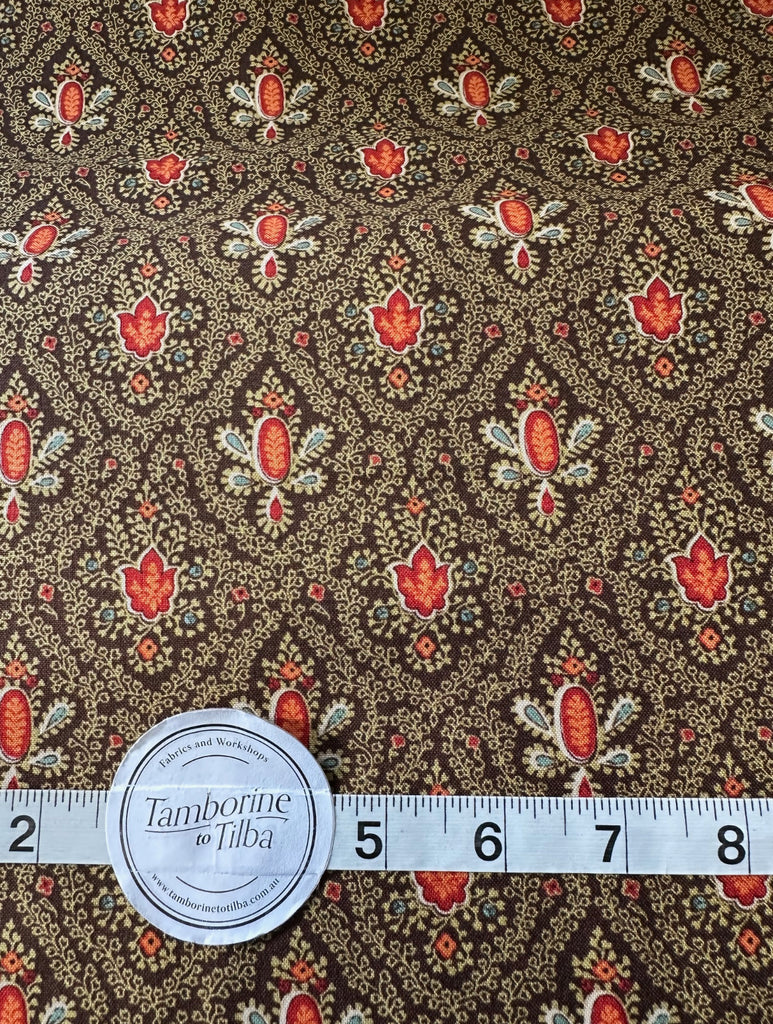 Fabric - Reproduction - (2965) Floral Medallions on Chocolate