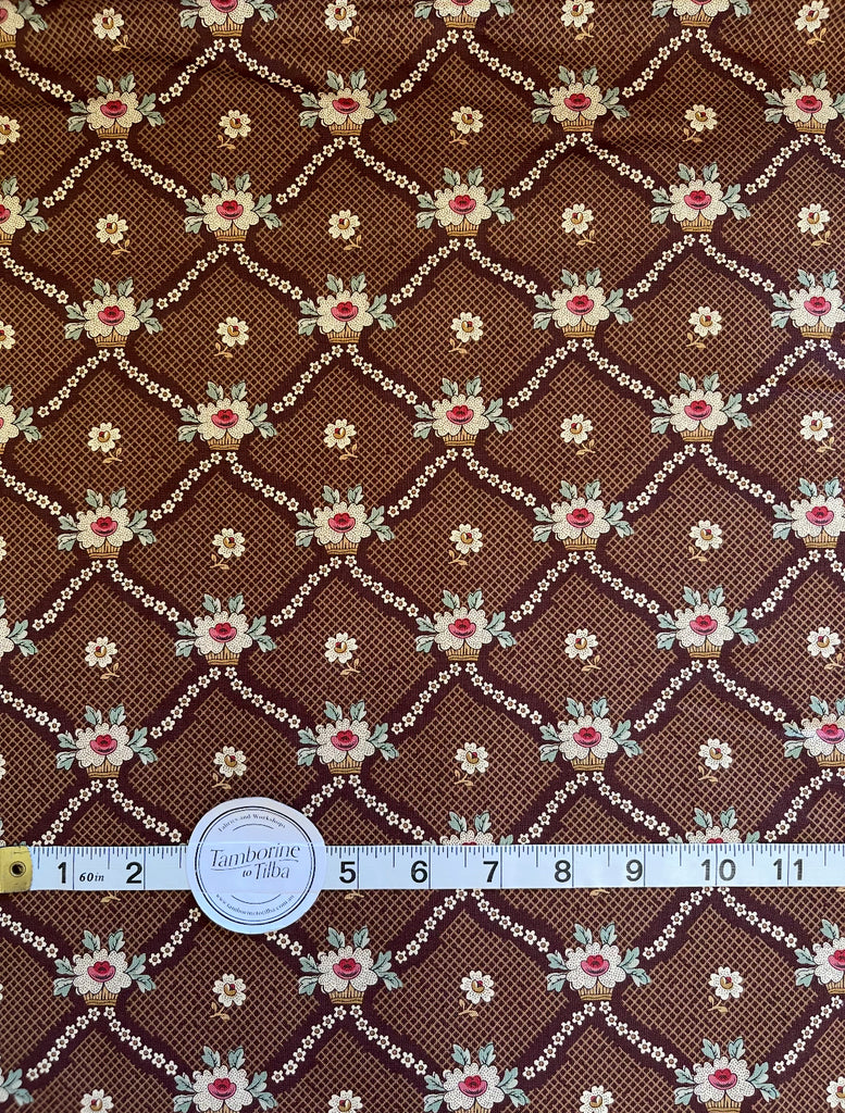 Fabric - Reproduction - (3176) Floral Baskets Lattice on Chocolate