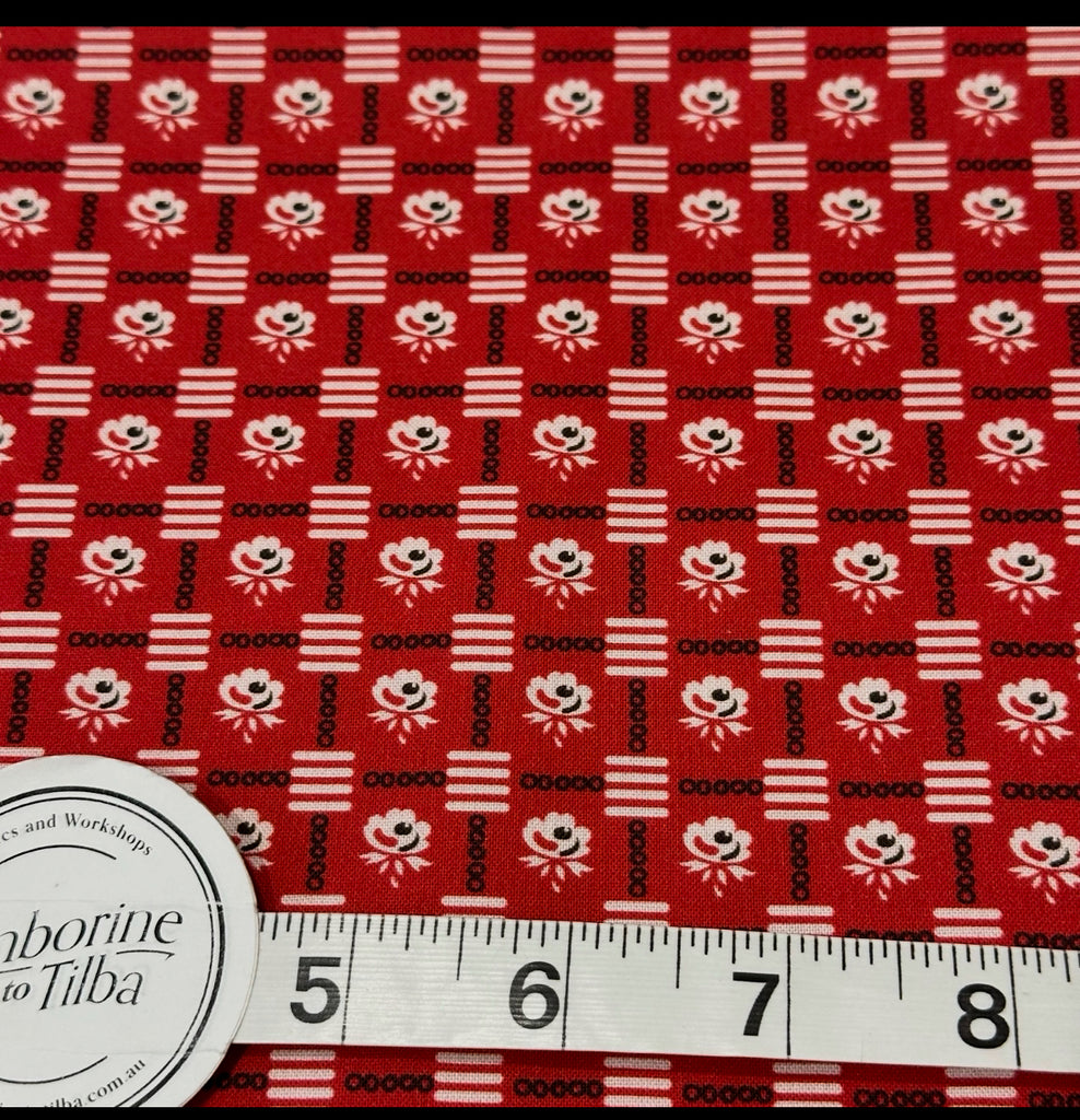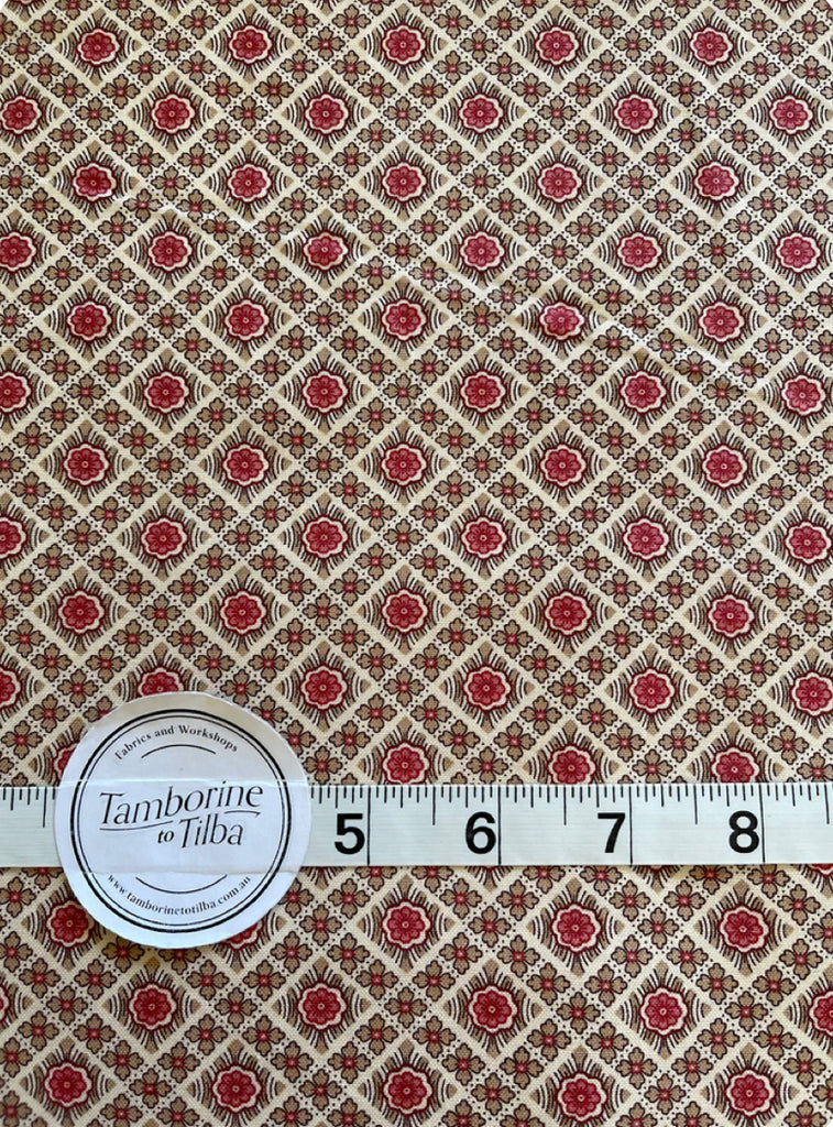 Fabric - Reproduction - (3086) Luccello Raspberry, Pink & Vanilla on Red