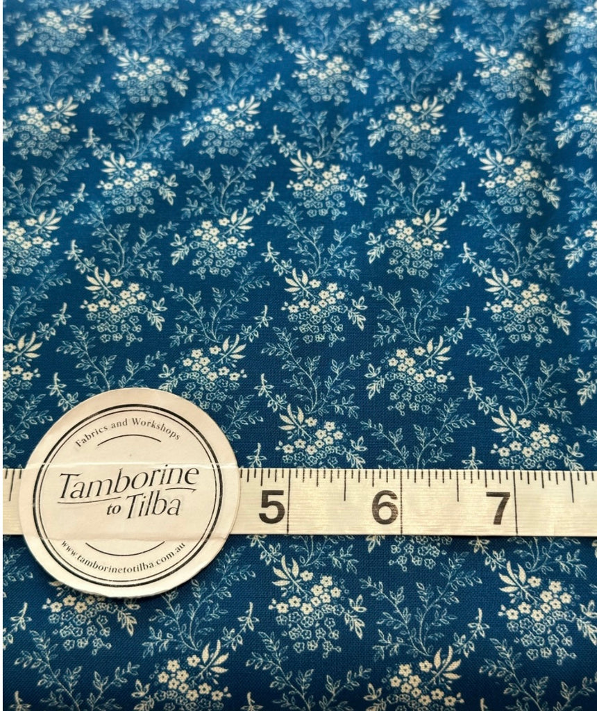 Fabric - Reproduction - (3093) Luccello Prussian Blue Leafy Floral