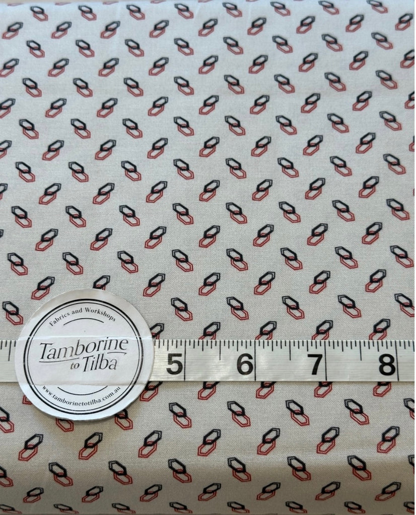 Fabric - Shirting - Circles & Crosses in Red, Black & White