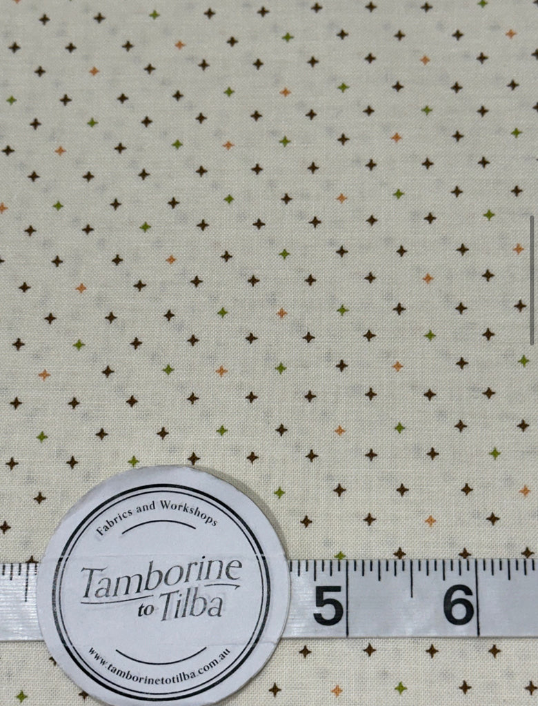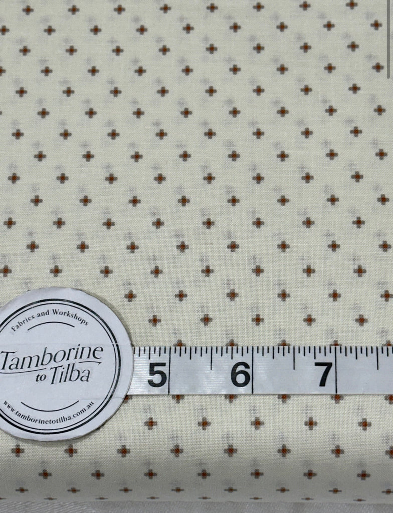 Fabric - Shirting - (3004) Tiny Caramel Cross with Rust Red Centre on Vanilla