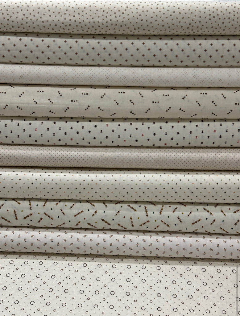 Fabric - Shirting - (3007) Small Square & Diamonds in 3 Browns on Vanilla
