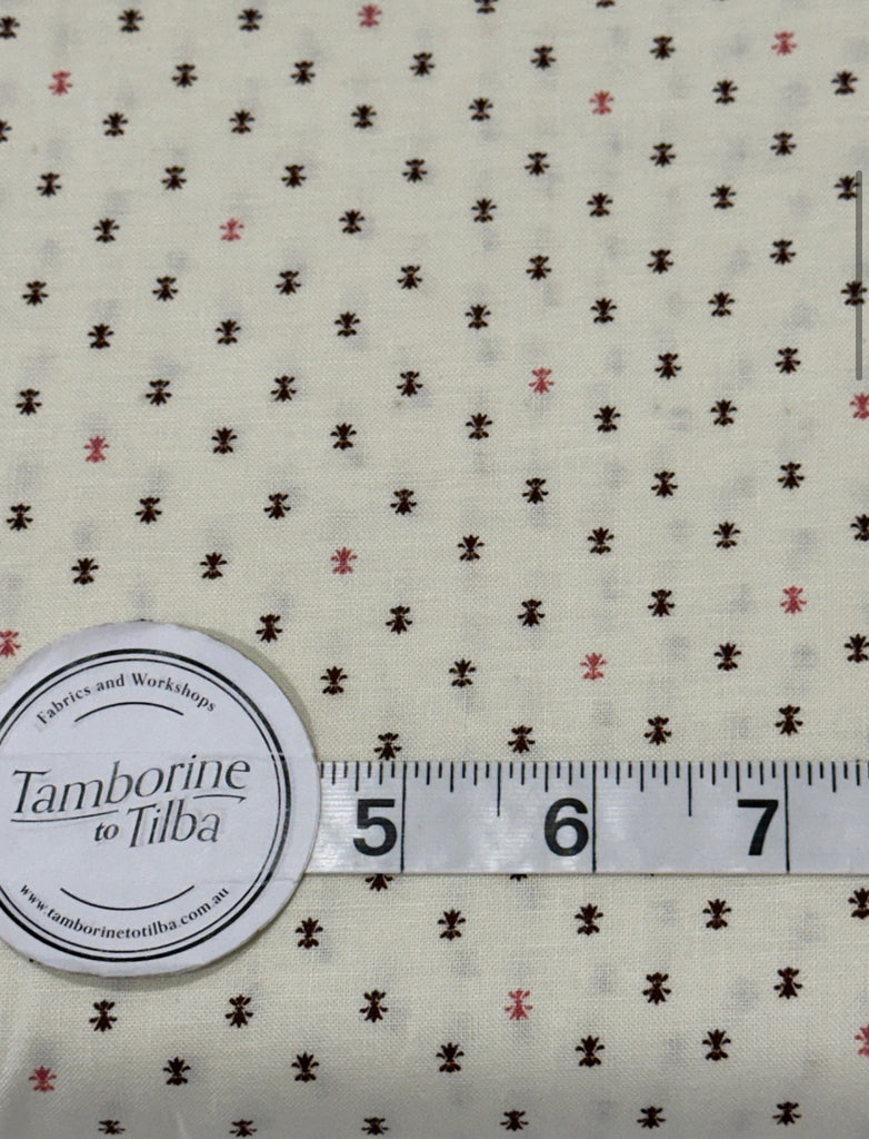 Fabric - Shirting - (3005) Tiny Chocolate & Pink Motifs on Vanilla