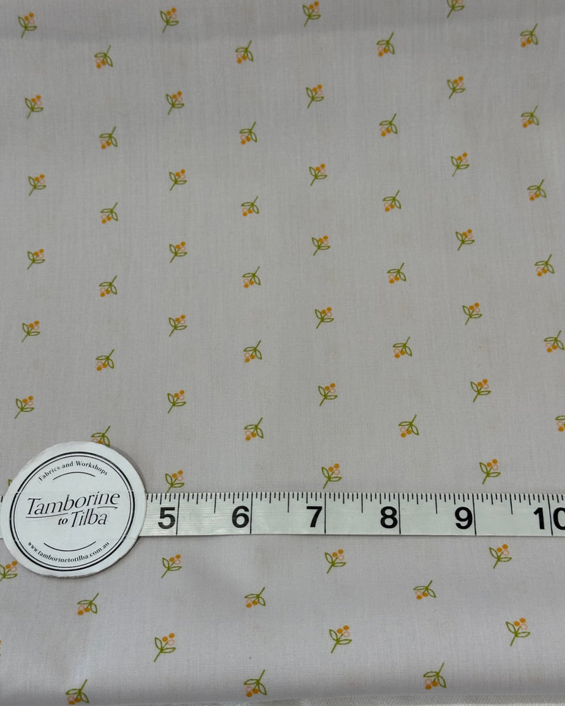 Fabric - Shirting - (3002) Delicate Green & Orange Sprigs on Oyster Background