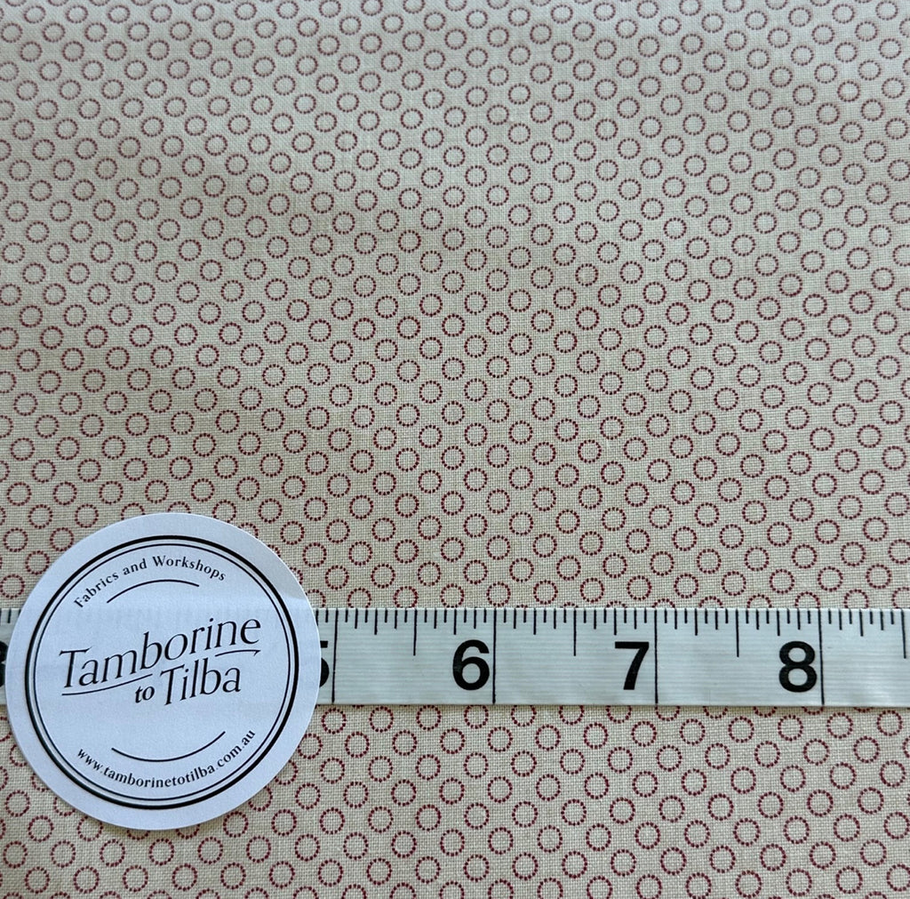 Fabric - Shirting - (3334) French General Joie De Vivre Fine Red Circles on Vanilla