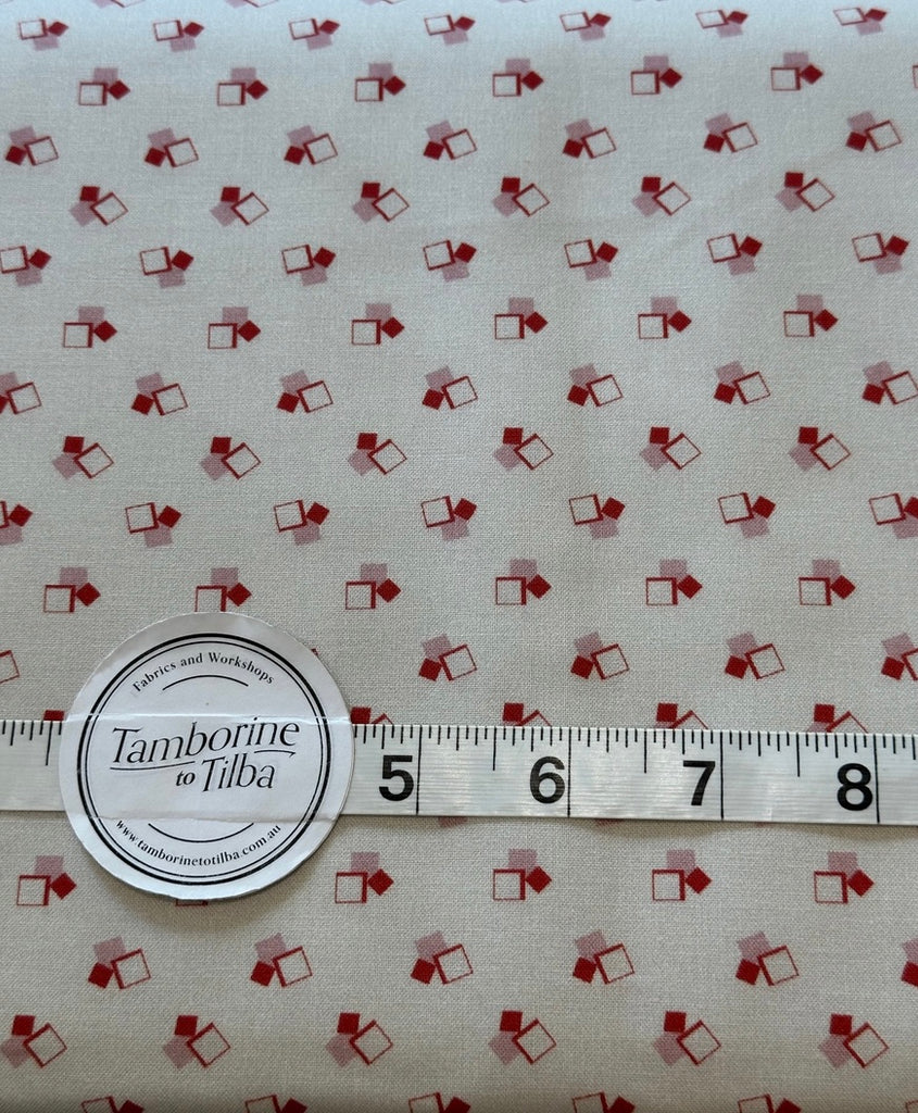 Fabric - Shirting - (351) Tiny Raspberry Squares on Vanilla