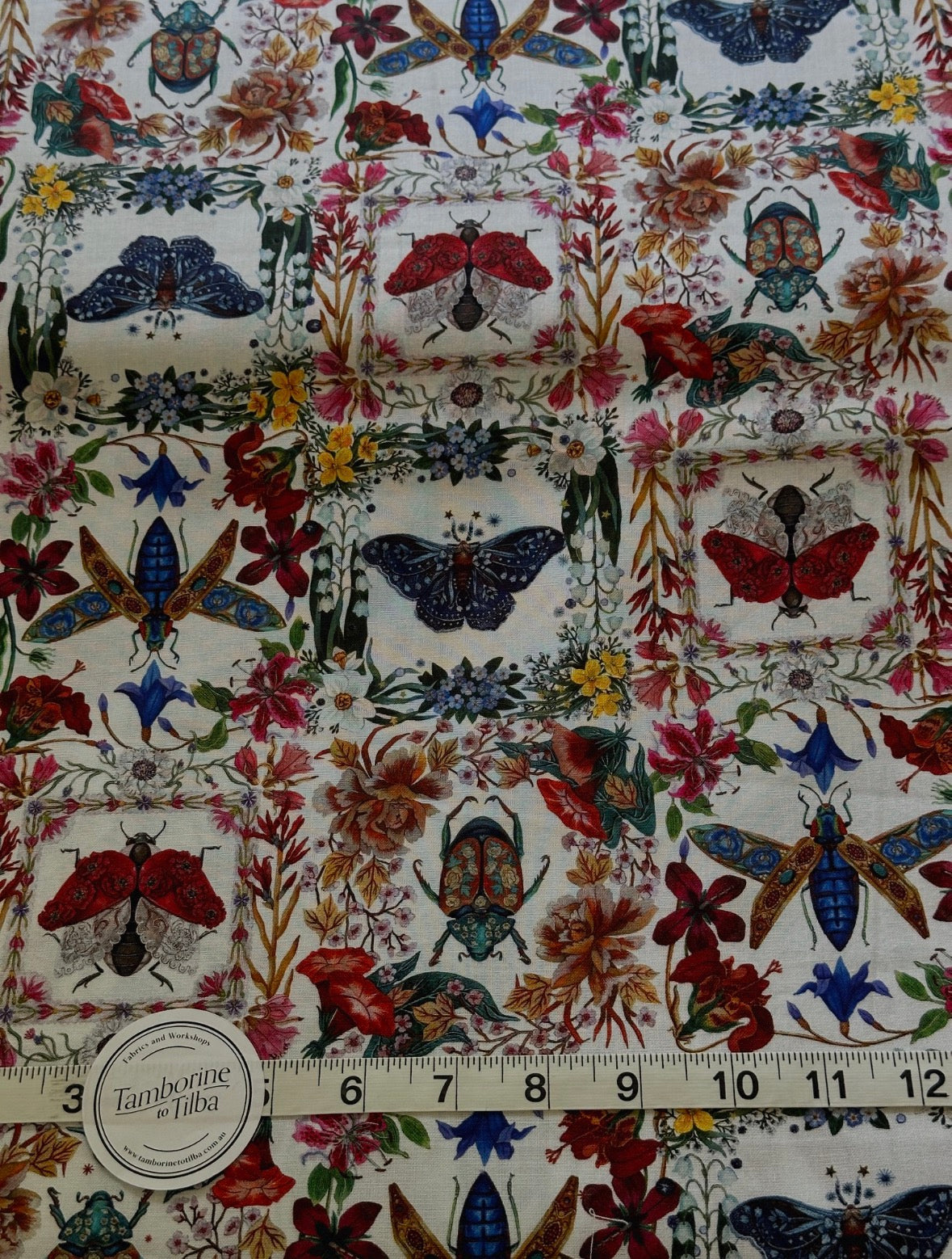 Fabric - Birds, Animals & Insects - (3286A) Exquisite Insects in Floral Squares