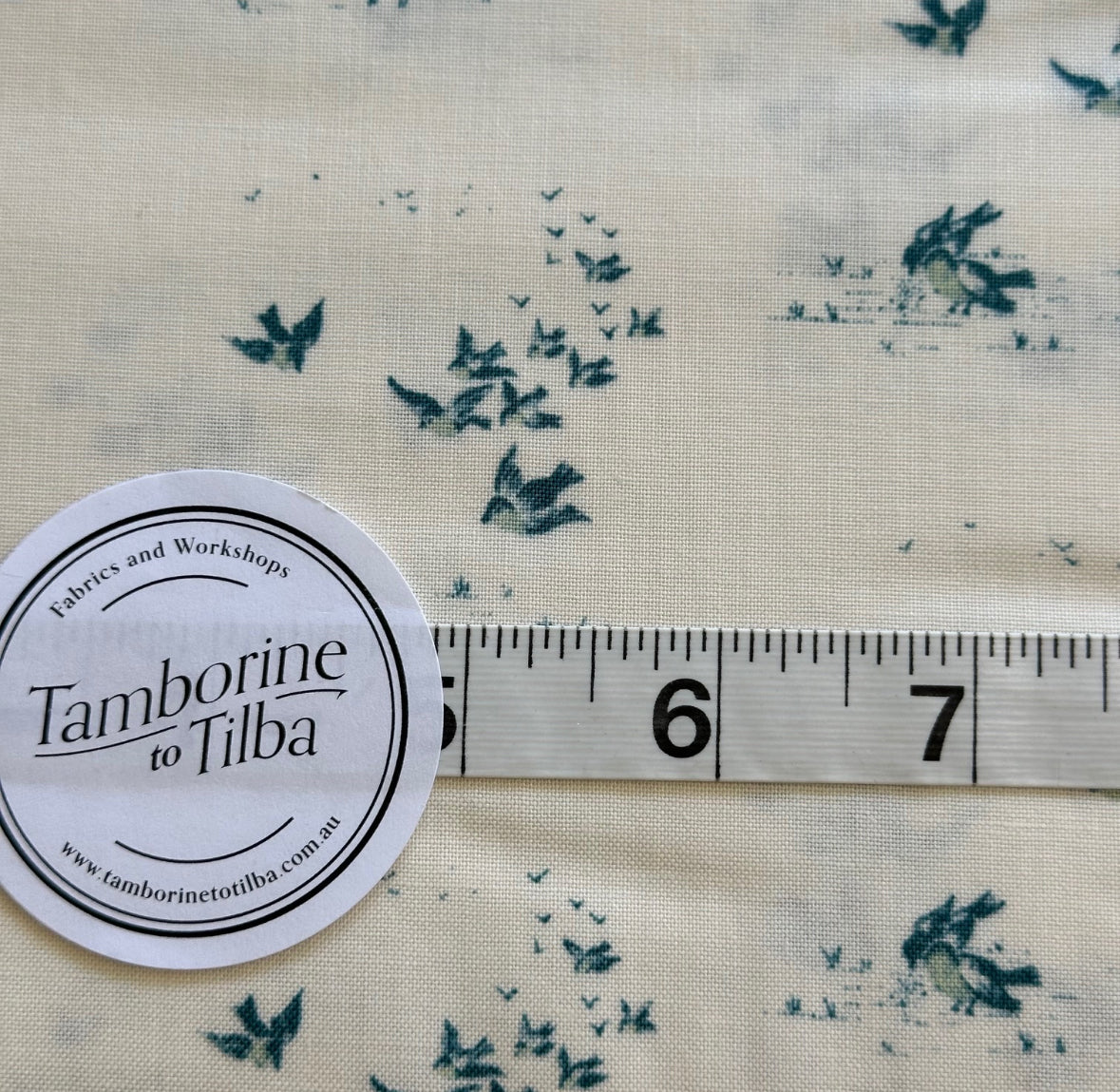 Fabric - Birds, Animals & Insects - (3388) Sweet Teal Birds on Vanilla by Max & Louise is backordered and will ship as soon as it is back in stock.