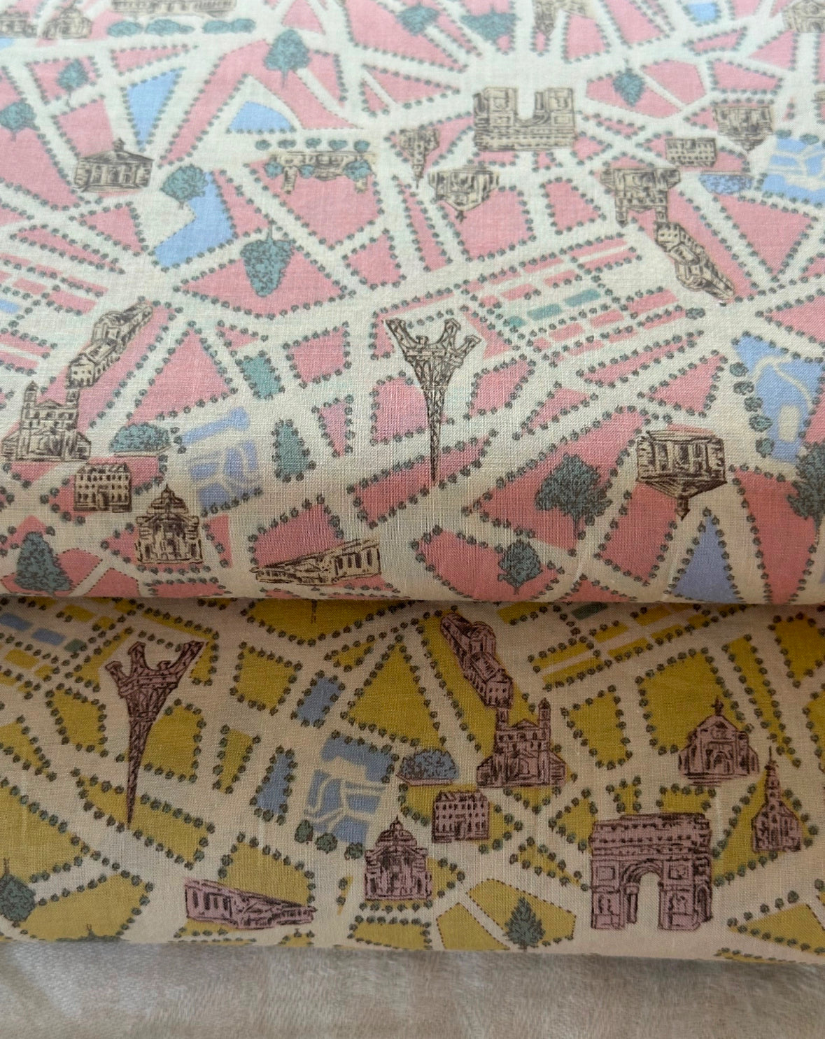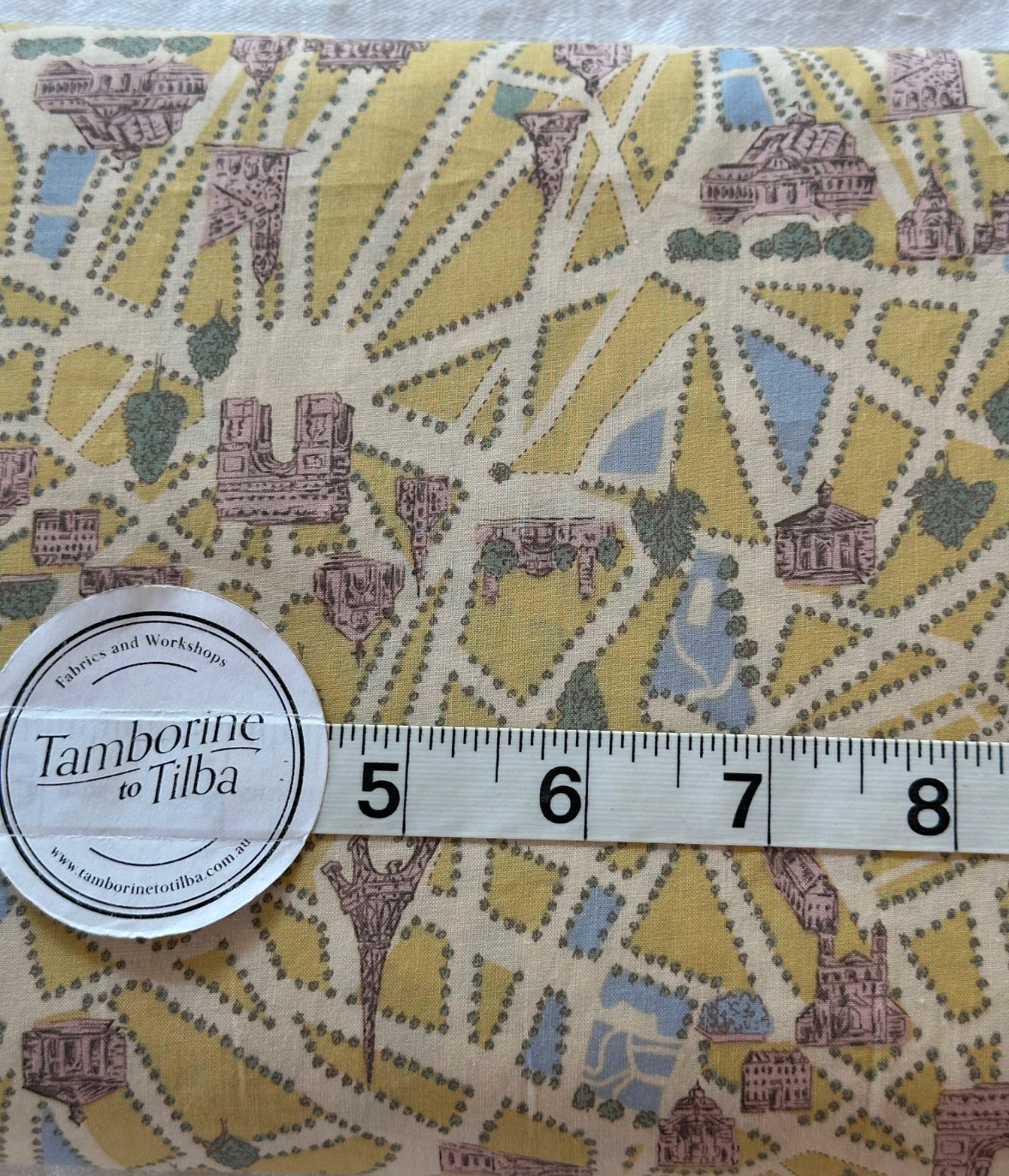 Fabric - Conversation - (2390) Map of Paris on Soft Yellow