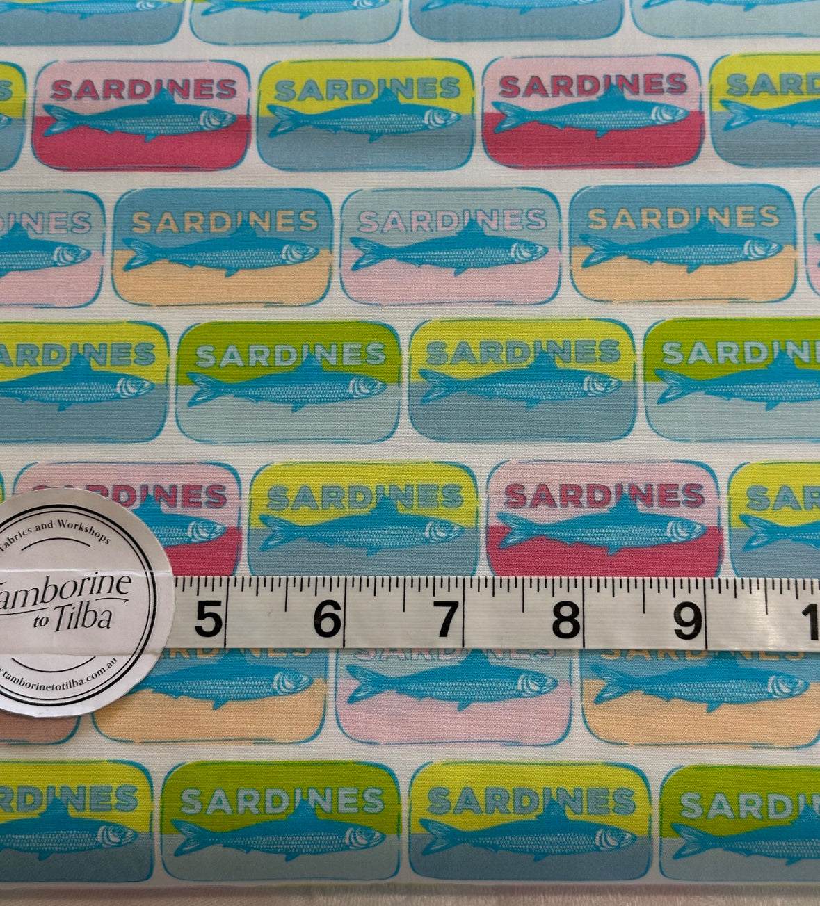 Fabric - Conversation - (2878) Sardine Cans on Vanilla is backordered and will ship as soon as it is back in stock.