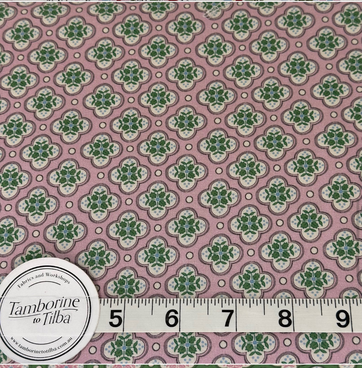 Fabric - Floral - (3041) Guinevere Green & Vanilla Cartouche on Pink