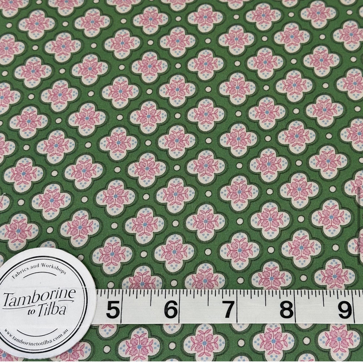 Fabric - Floral - (3042) Guinevere Pink & Vanilla Cartouche on Green is backordered and will ship as soon as it is back in stock.