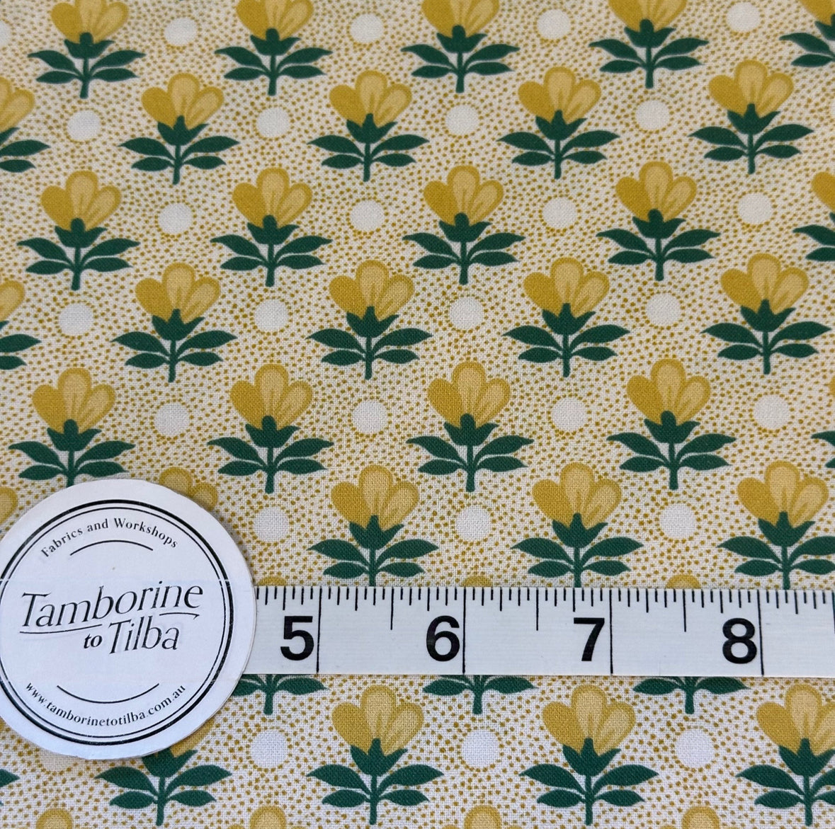 Fabric - Floral - (3046) Guinevere Yellow & Green on Picotage Background
