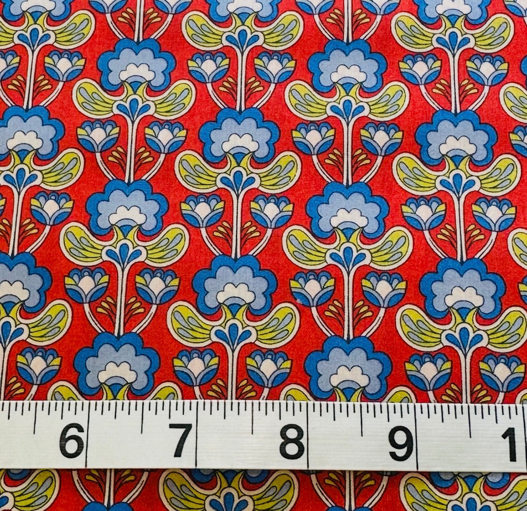 Fabric - Liberty - (3464) Blues & Green Stylised Floral on Red