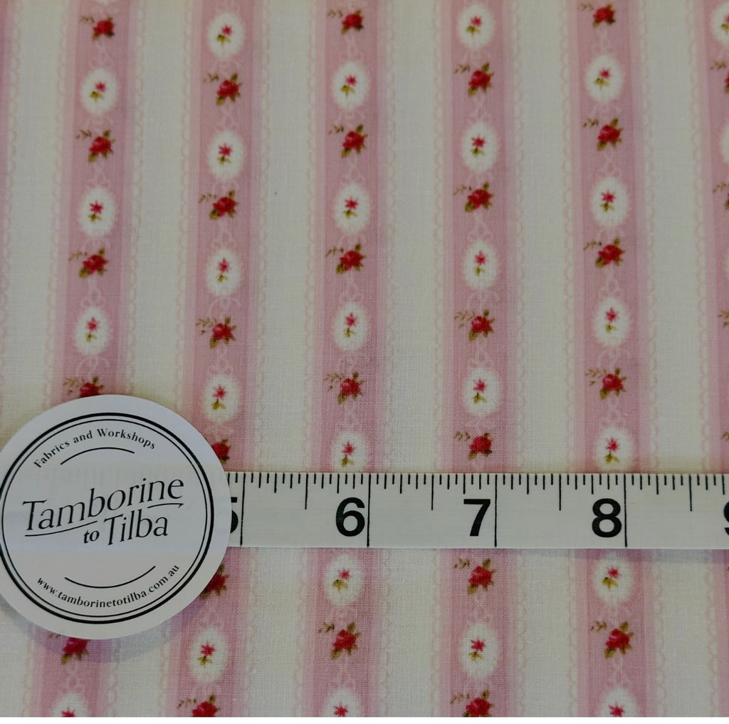Fabric - Stripes - (3469) Pink & Vanilla Floral Stripe