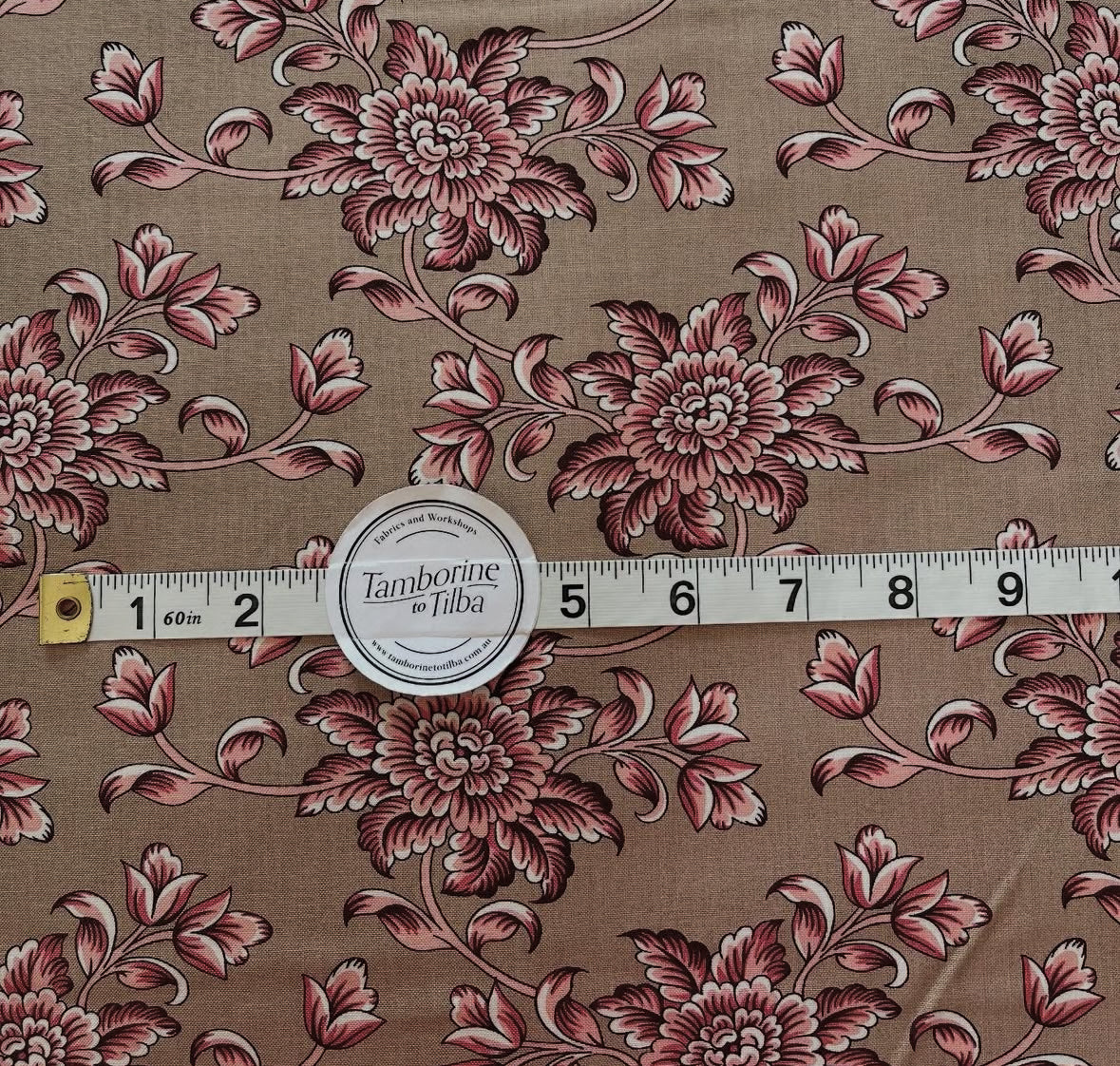 Fabric - Floral - (2856) Jane Austen Pink Floral on Milk Chocolate is backordered and will ship as soon as it is back in stock.