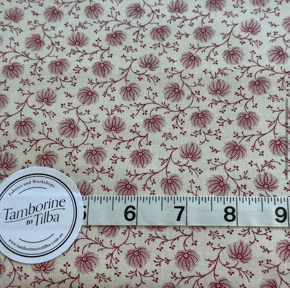 Fabric - Floral- (3336) French General Joie De Vivre Small Red Flowers on Vanilla is backordered and will ship as soon as it is back in stock.