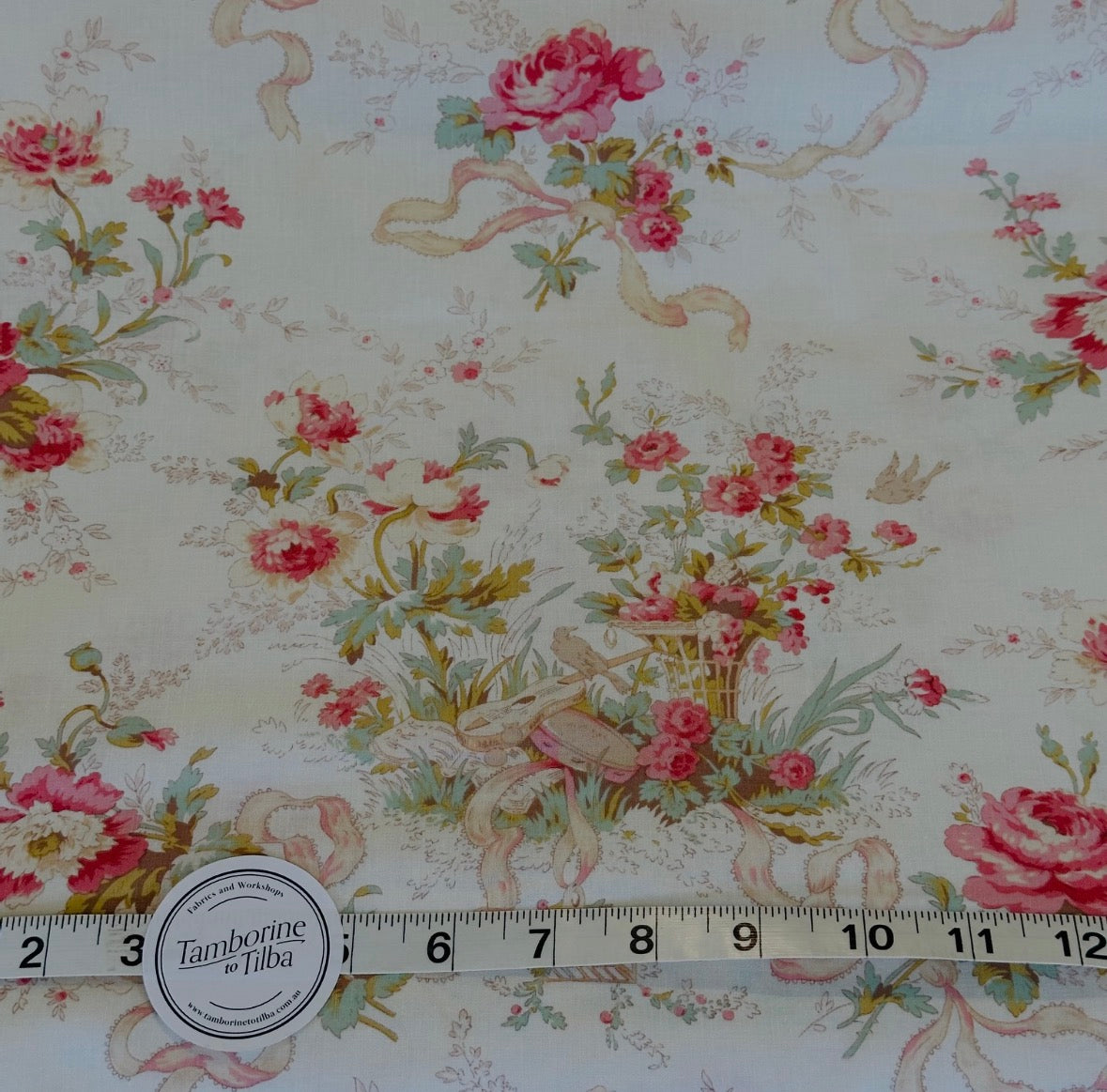 Fabric - Floral - (3466) Beautiful Blooms, Baskets & Ribbon on Vanilla is backordered and will ship as soon as it is back in stock.