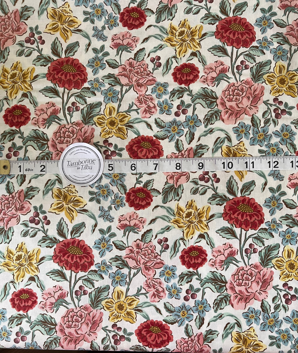 Fabric - Floral - (2834) Jane Austen Lovely Floral on Vanilla is backordered and will ship as soon as it is back in stock.