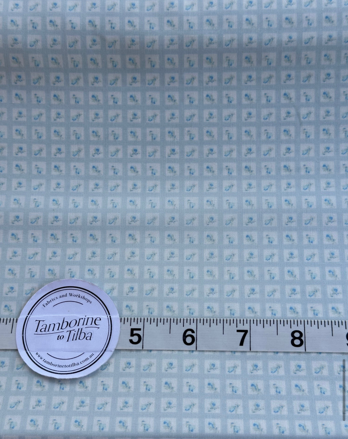 Fabric - Yuwa - (3119) Dove Blue Grey Grid with Tiny Blue Buds is backordered and will ship as soon as it is back in stock.