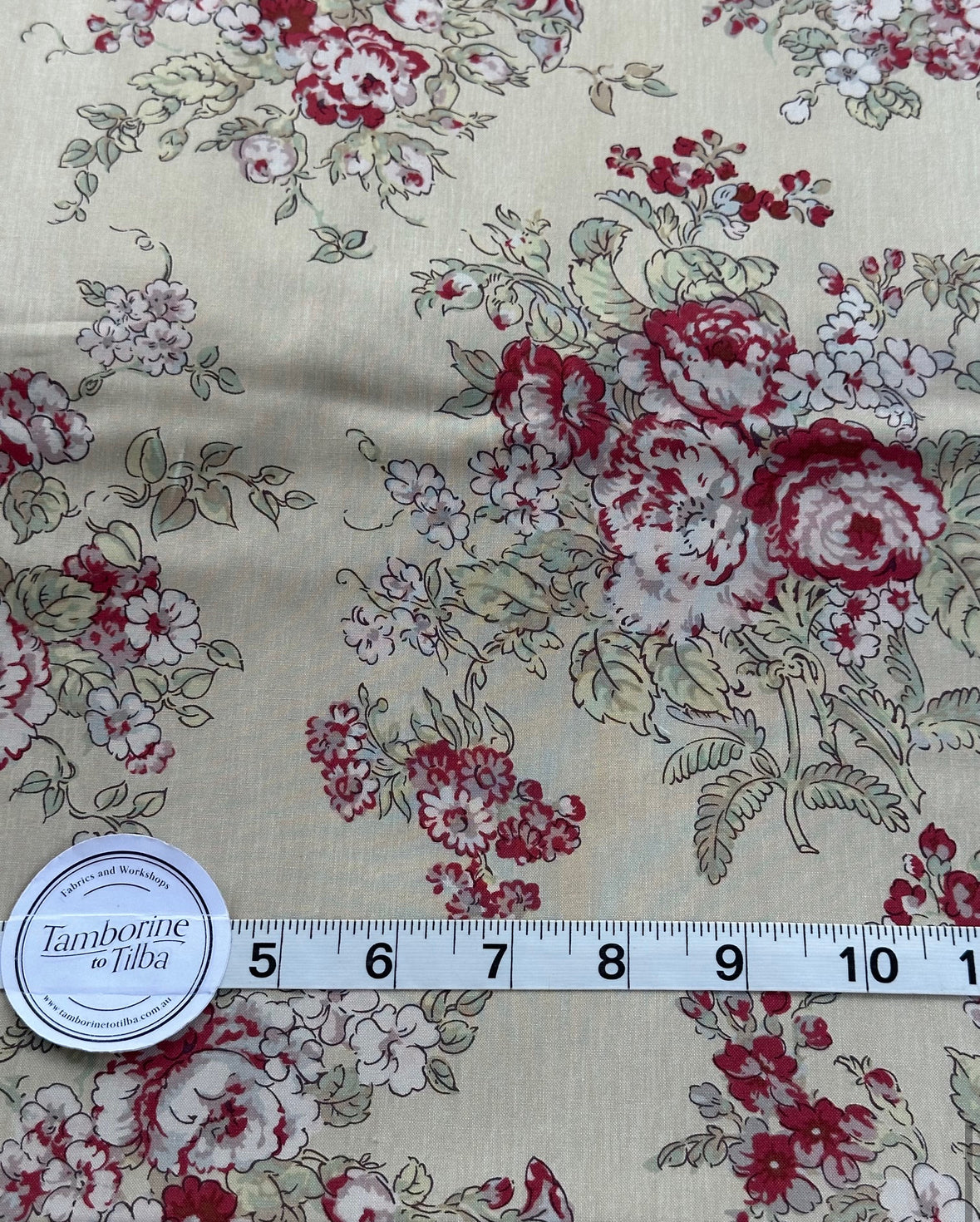 Fabric - Yuwa - (3136) Soft Pink & Green on Soft Ecru is backordered and will ship as soon as it is back in stock.