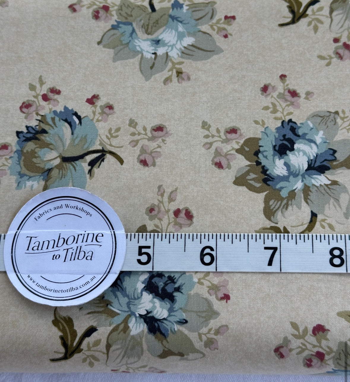 Fabric - Yuwa - (3145) Blue, Green, Pink & Plum Floral on Biscuit is backordered and will ship as soon as it is back in stock.