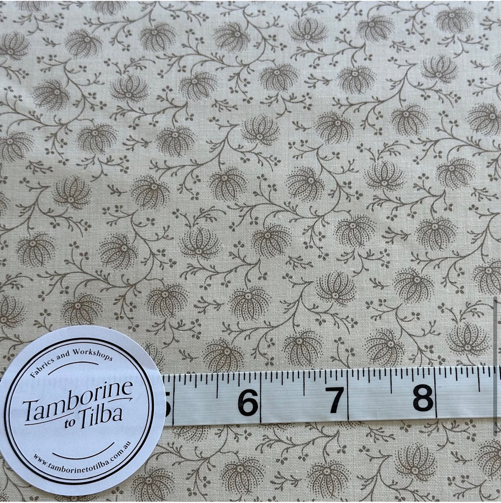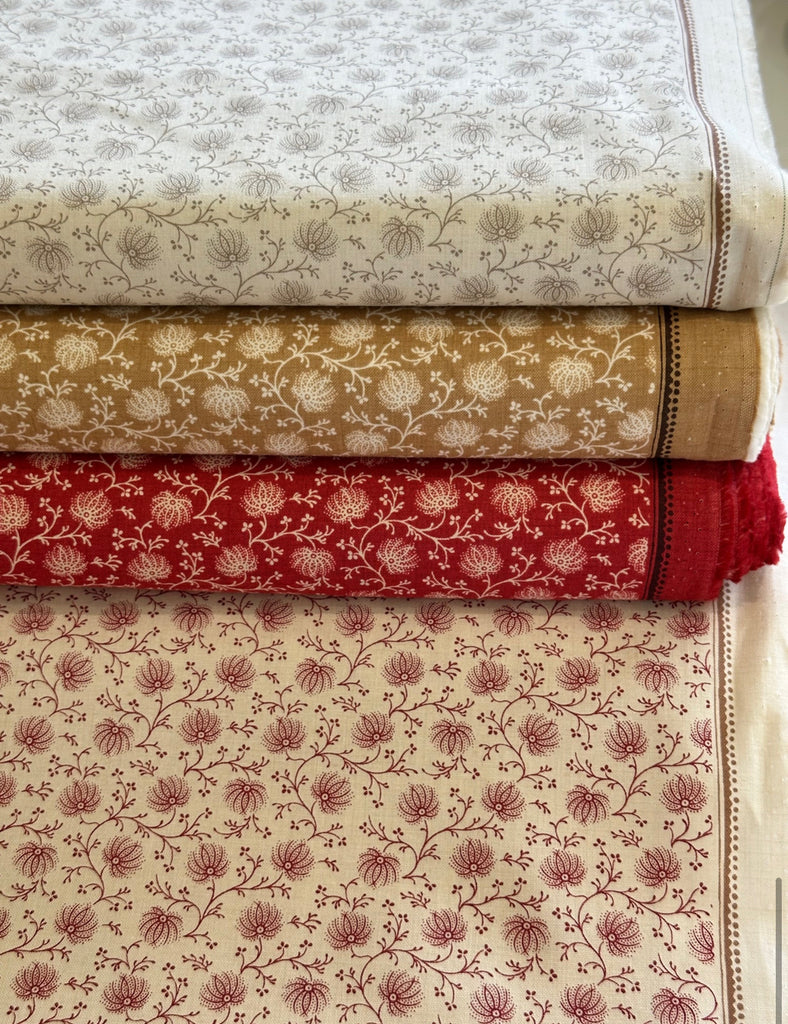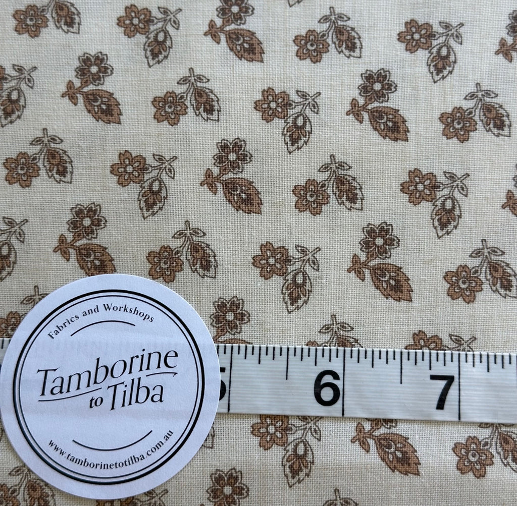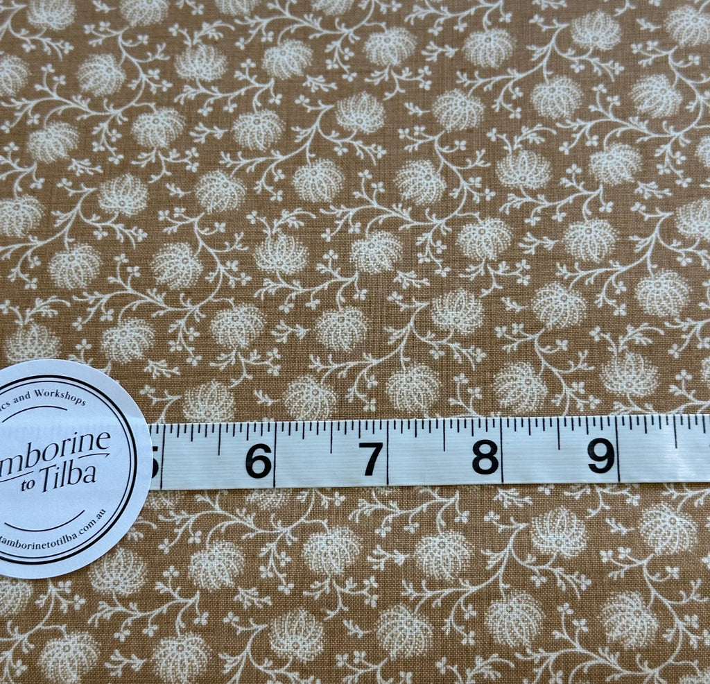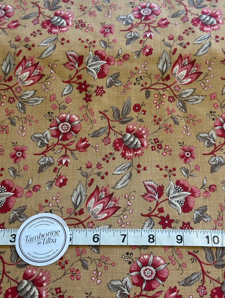 Fabric - Floral- (3340) French General Joie De Vivre Small Caramel/Gold Floral on Vanilla