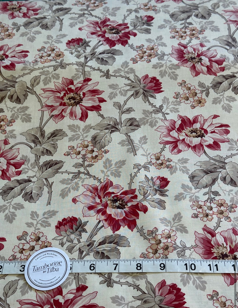 Fabric - Floral - (3324) French General Joie De Vivre Large Blooms on Vanilla
