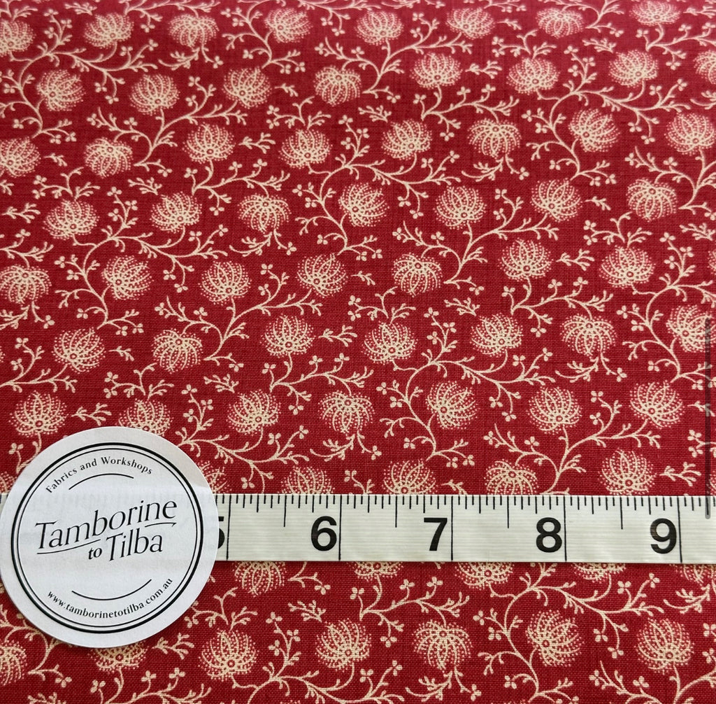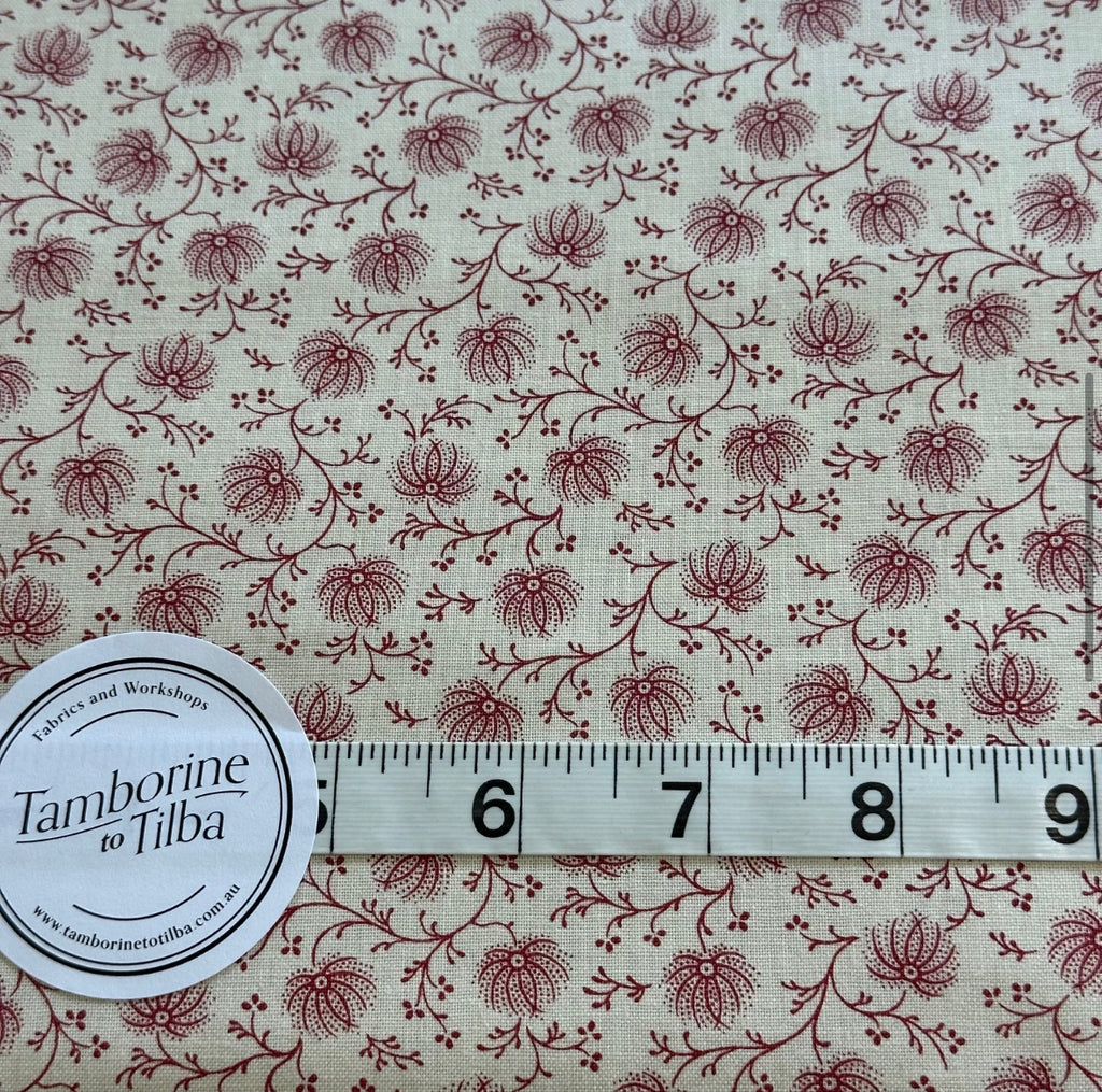 Fabric - Floral- (3337) French General Joie De Vivre Small Vanilla Flowers on Red