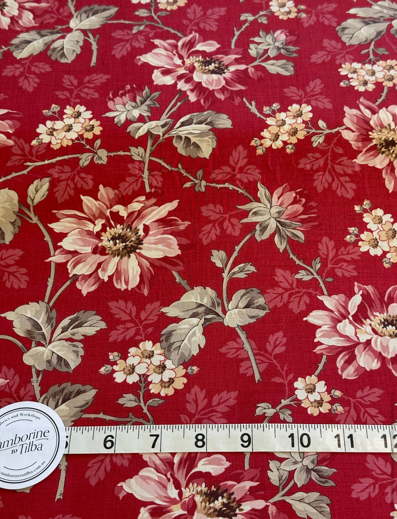 Fabric - Floral - (3322) French General Joie De Vivre Large Blooms on Red