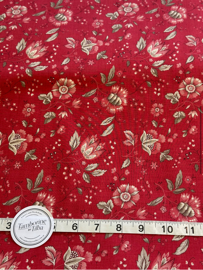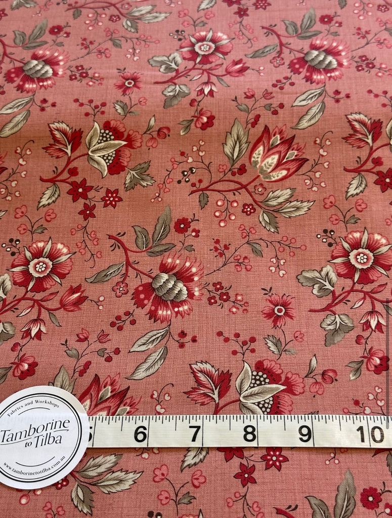 Fabric - Floral- (3339) French General Joie De Vivre Small Red & Pink Floral on Stone