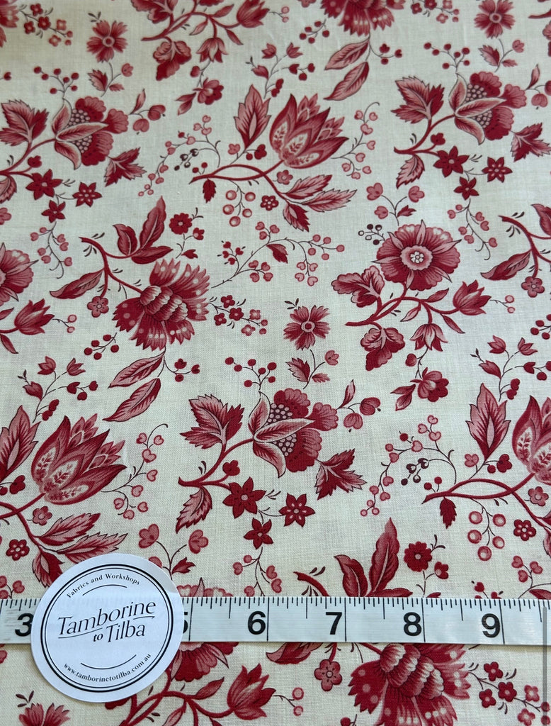 Fabric - Floral- (3336) French General Joie De Vivre Small Red Flowers on Vanilla