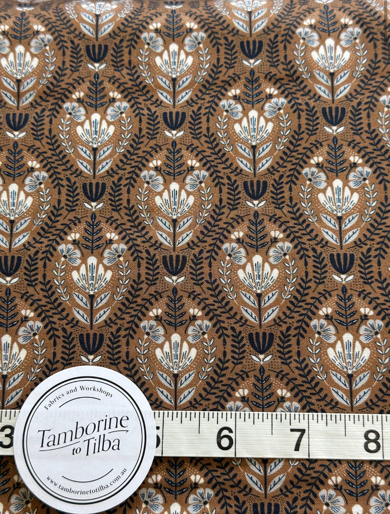 Fabric - Floral - (3345) Grey, Navy & Black on Brown