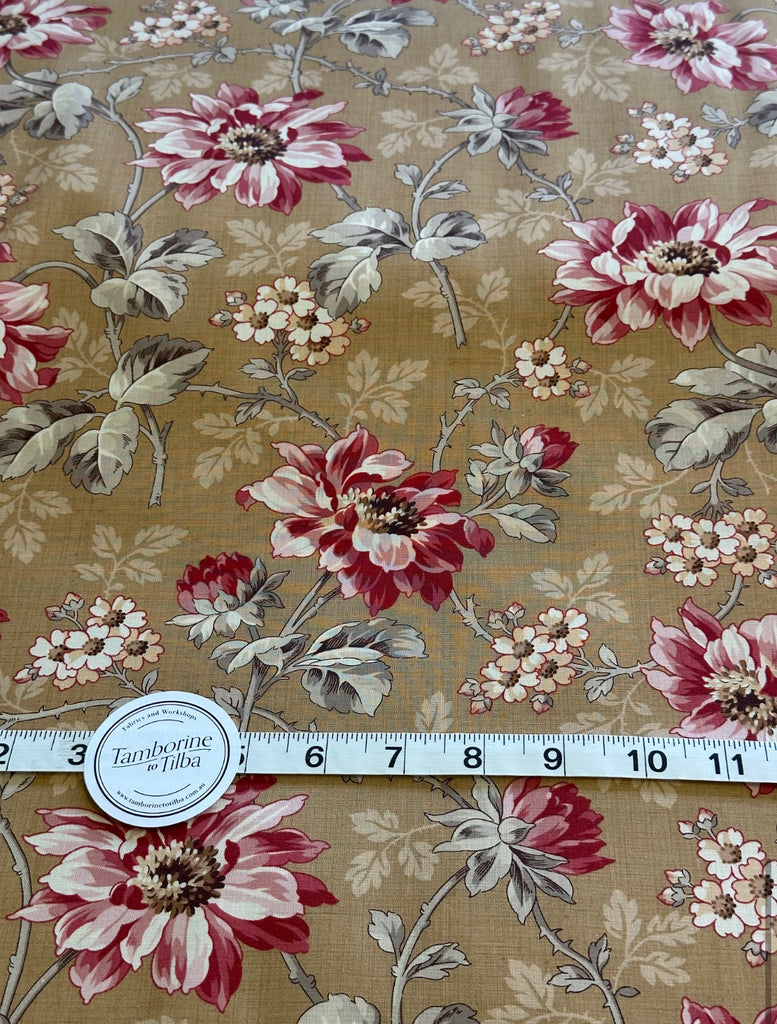 Fabric - Floral - (3325) French General Joie De Vivre Large Blooms on Caramel/Gold