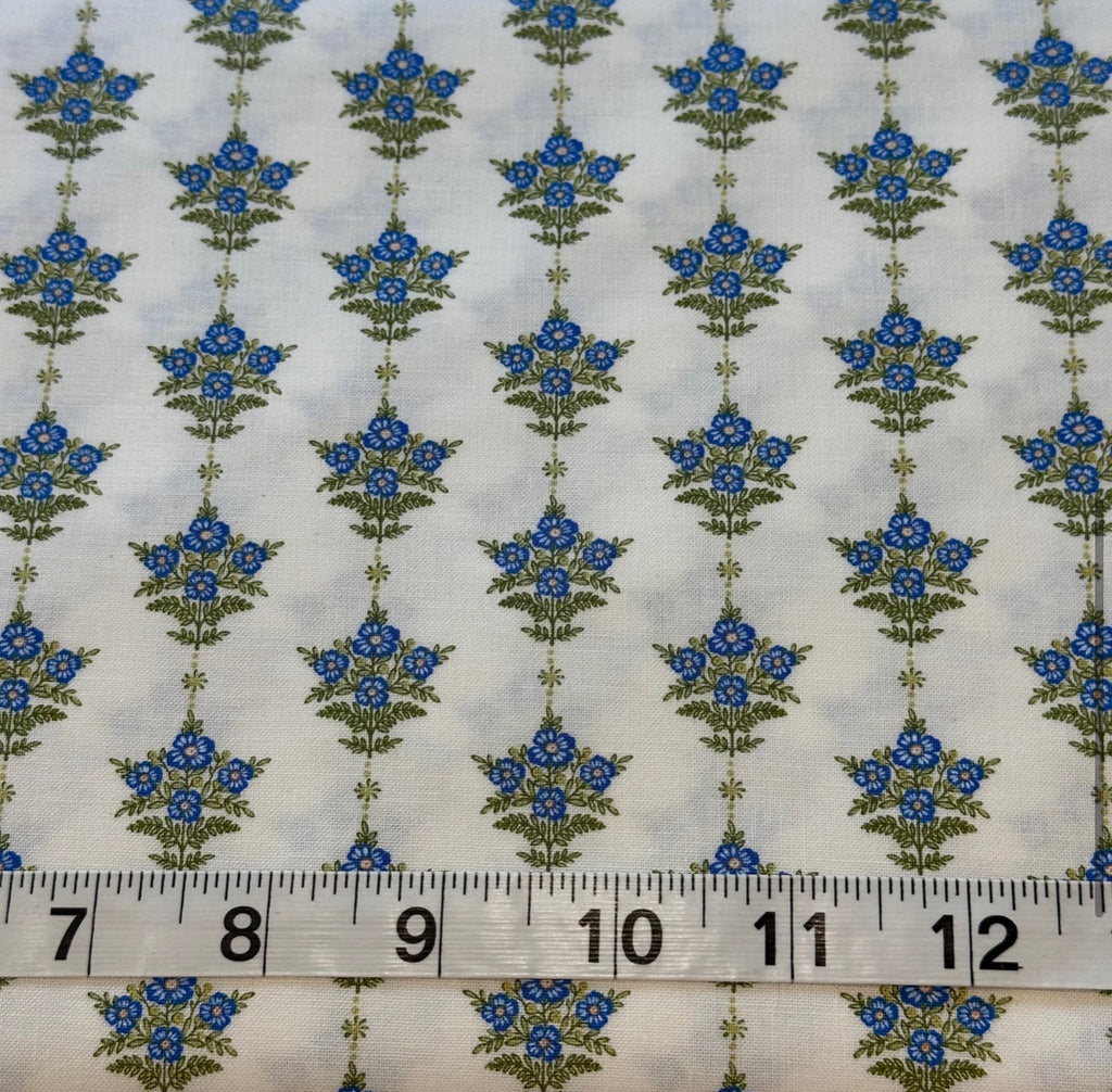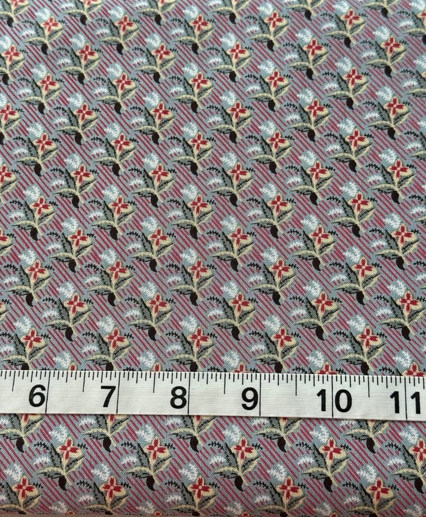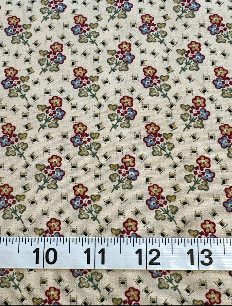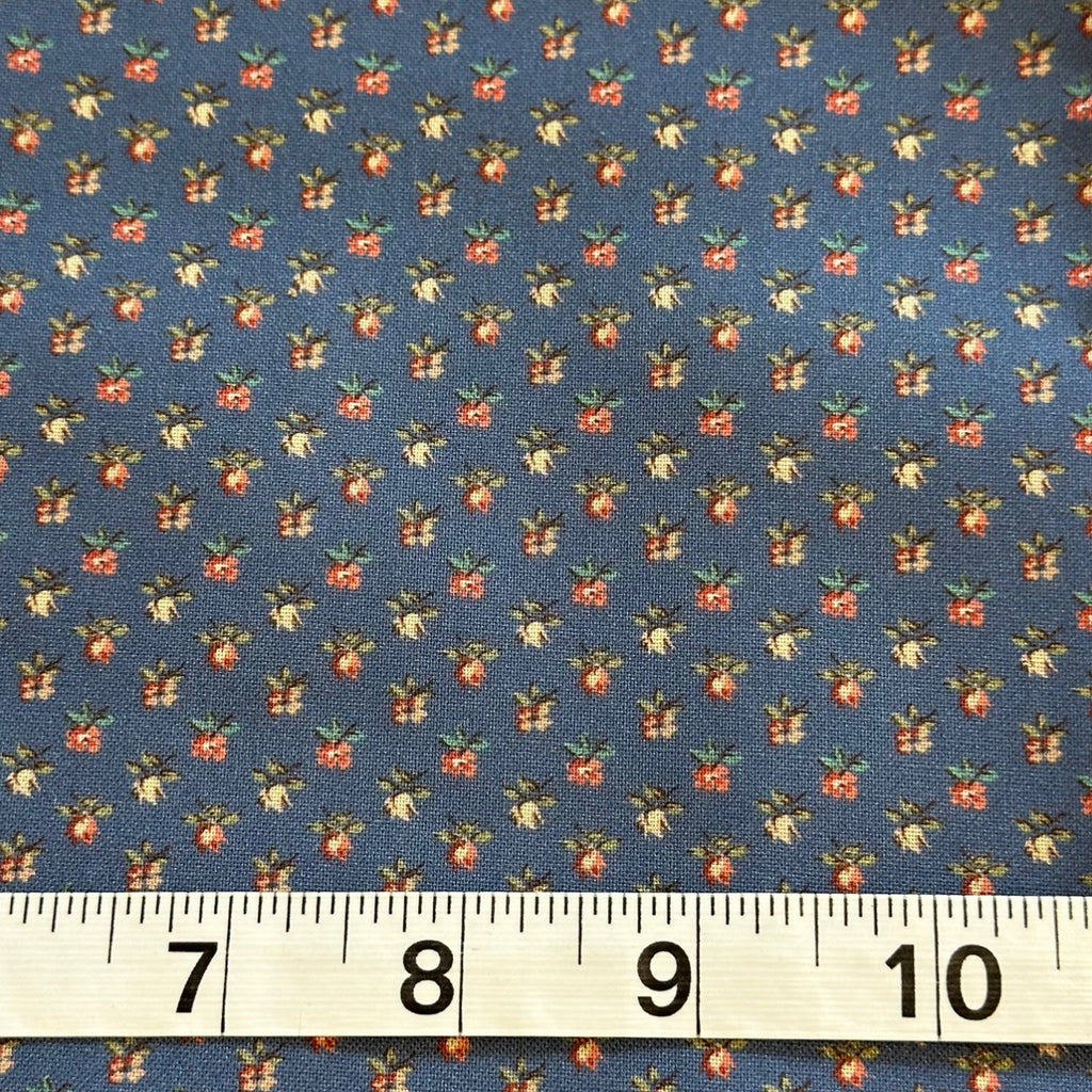 Fabric - Reproduction - (3275) Small Flowers in Blue, Red, Brown & Green