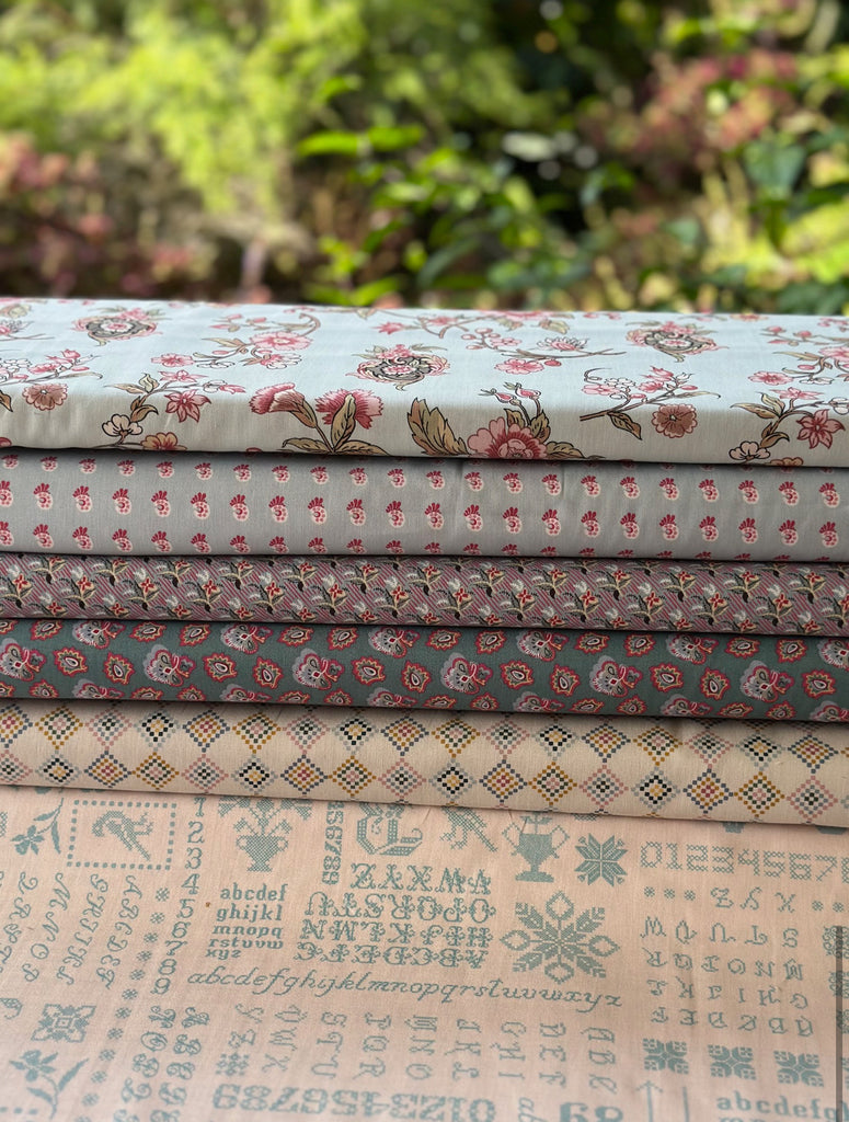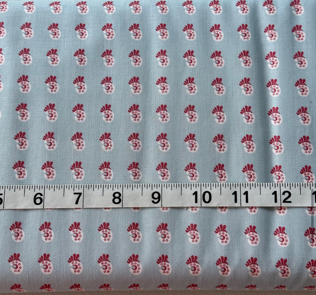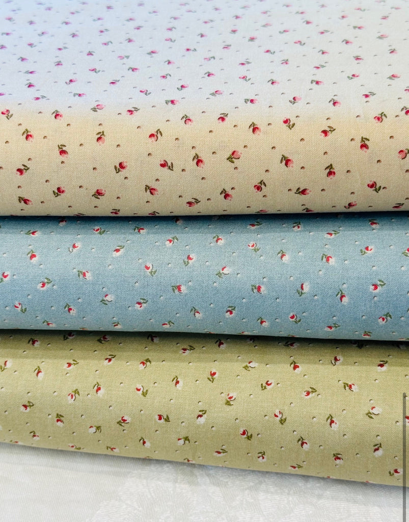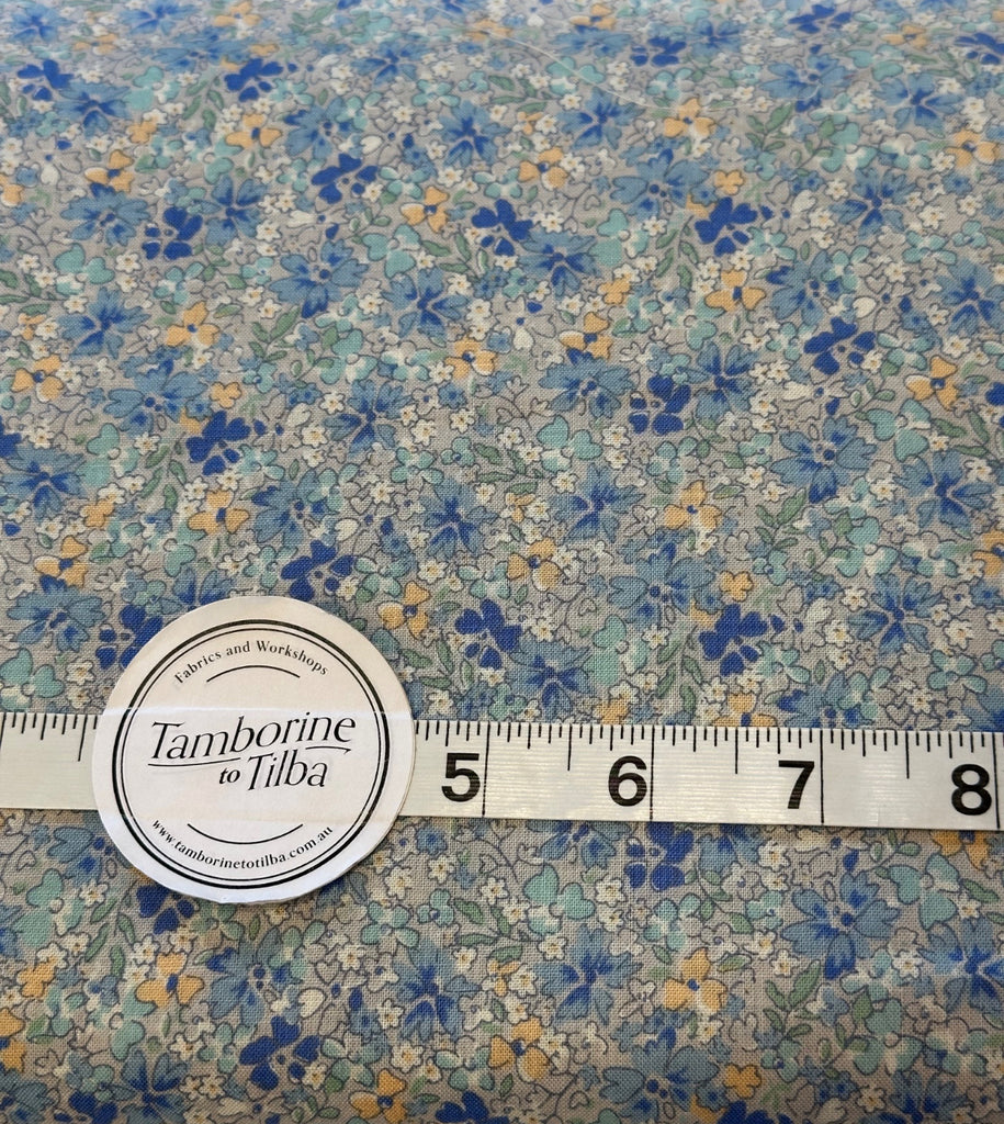 Fabric - Reproduction - (3275) Small Flowers in Blue, Red, Brown & Green