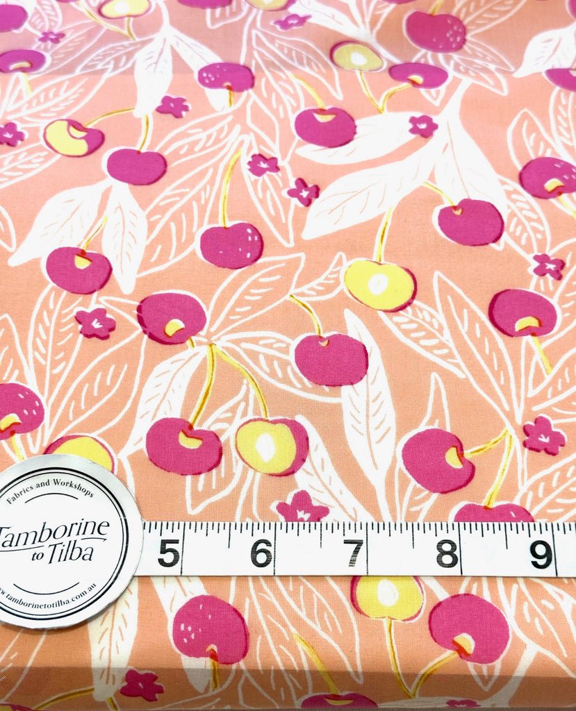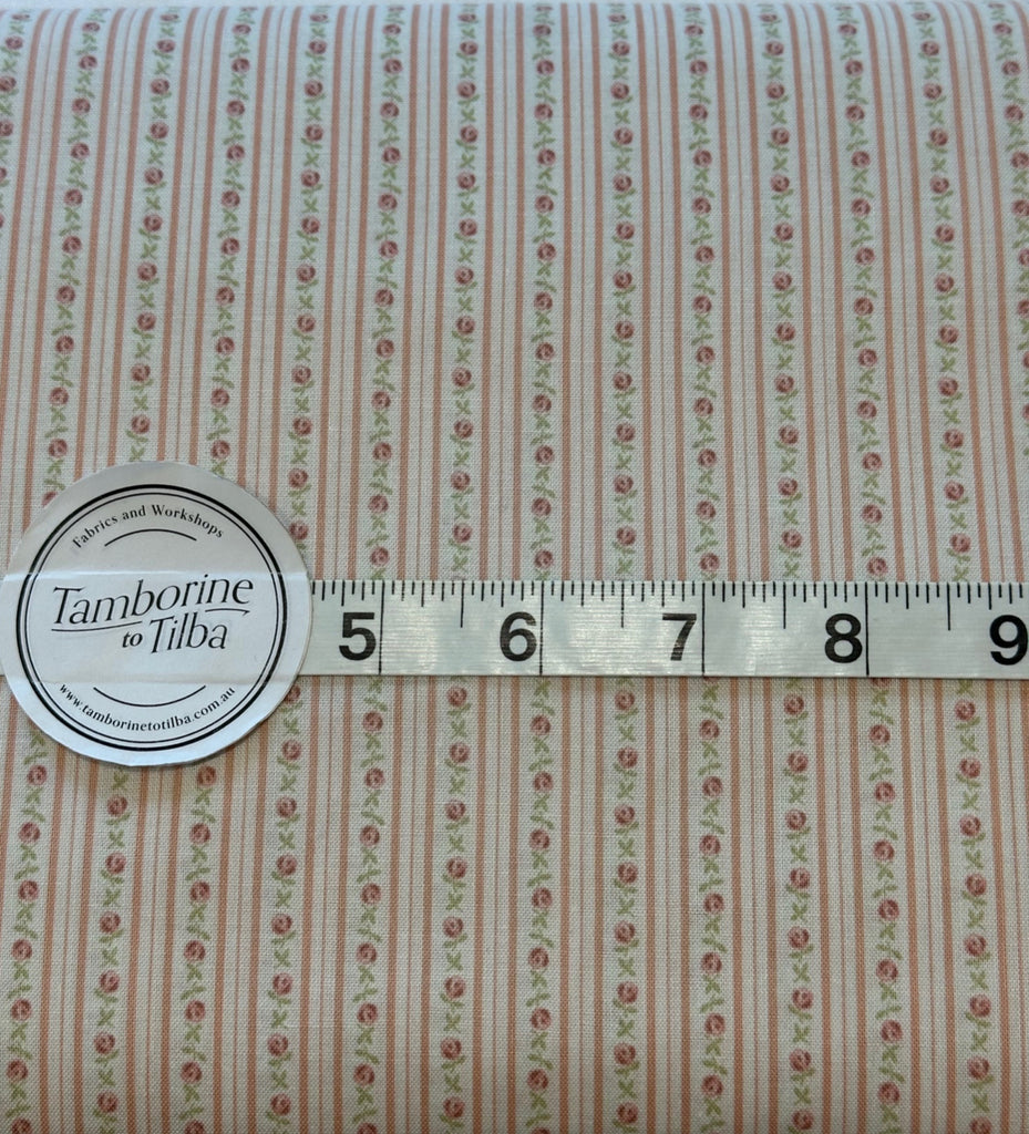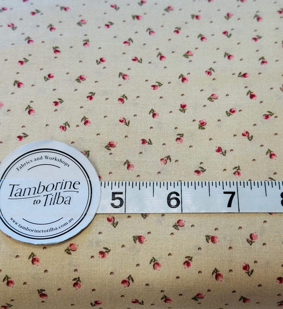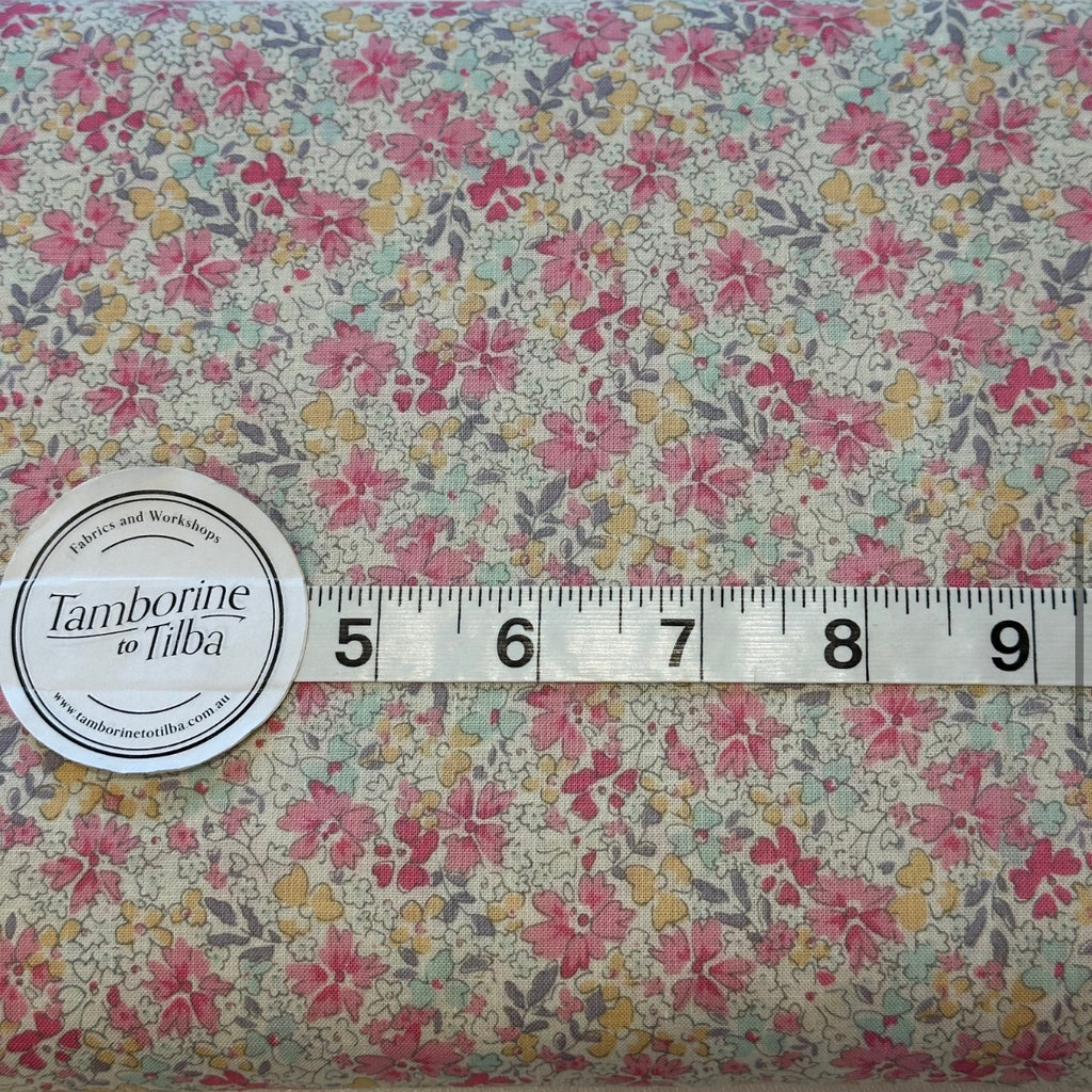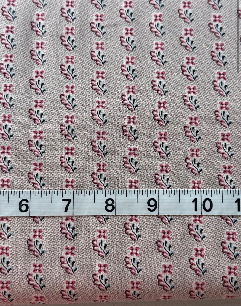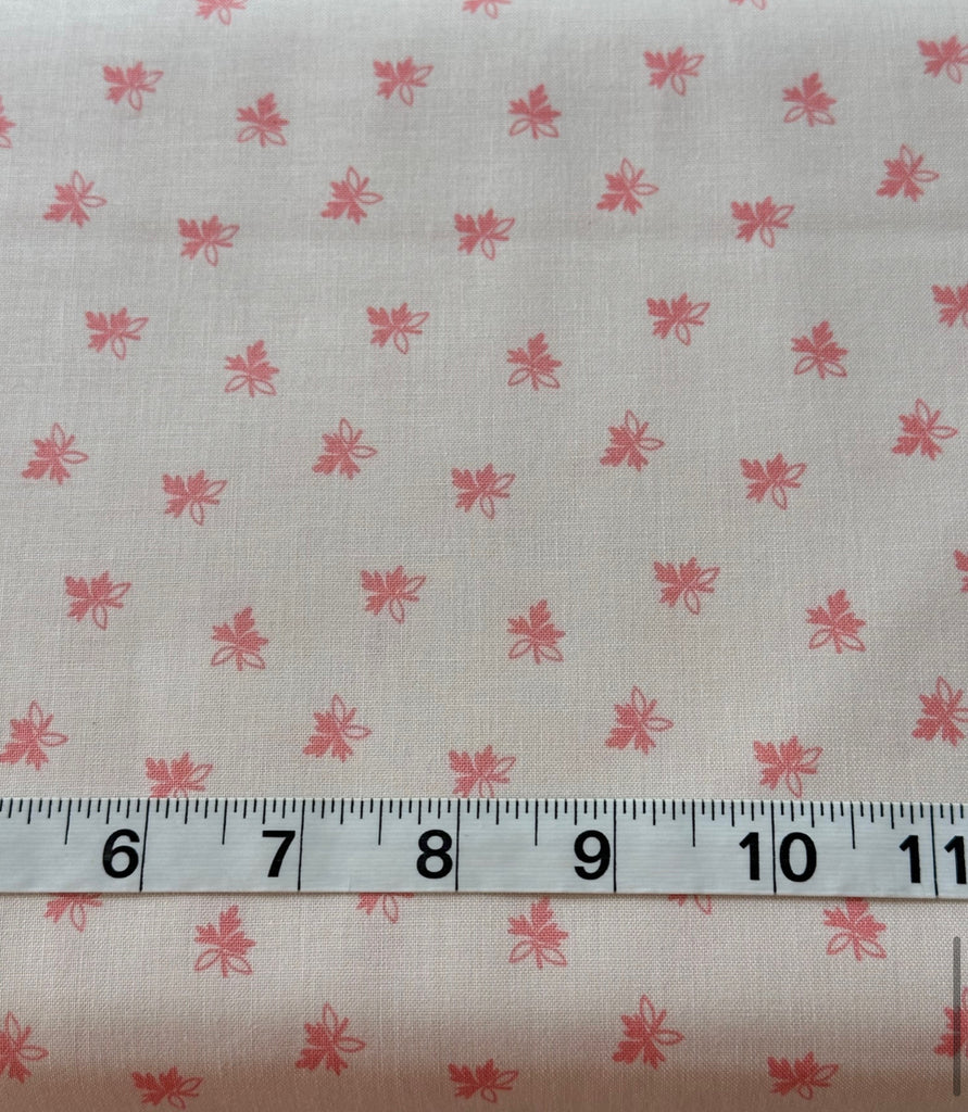 Fabric - Reproduction - (3237) Pink Leaf Motif on Vanilla