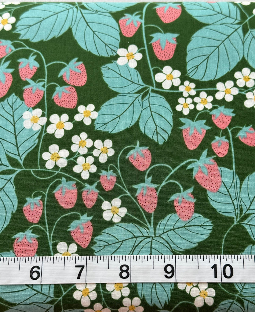 Fabric - Floral - (3226) Strawberries on Forest Green