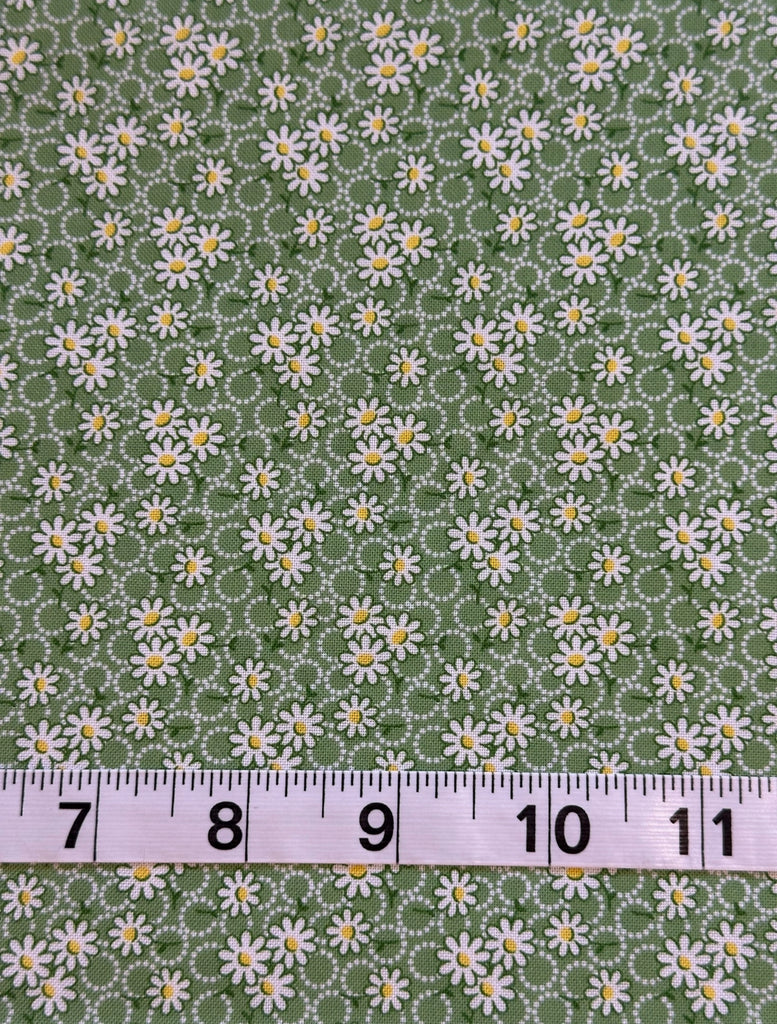 Fabric - Floral - (3285) Aunt Grace Daisies with Circle Detail on Green
