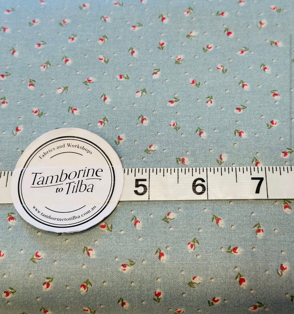 Fabric - Reproduction - (3235) Mansfield Park Powder Blue with Raspberry Detail