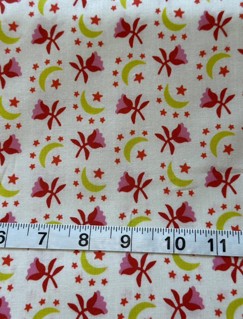 Fabric - Floral - (3244) Pink Flowers & Stars with Chartreuse Moon on Vanilla