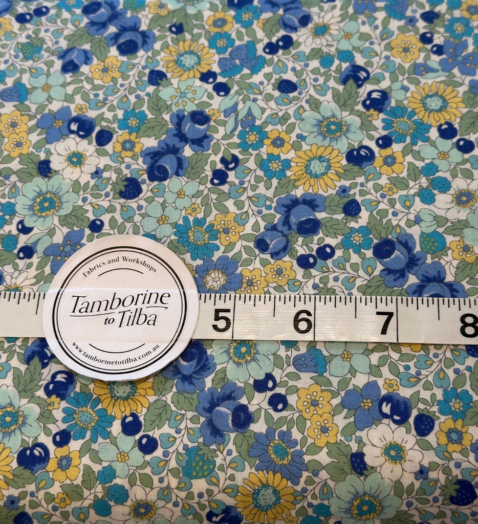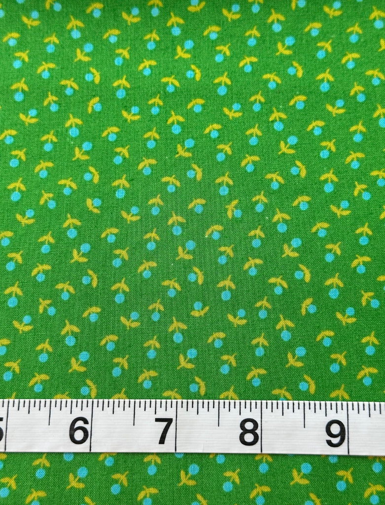 Fabric - Floral - (3227) Blue & Yellow Buds on Kelly Green
