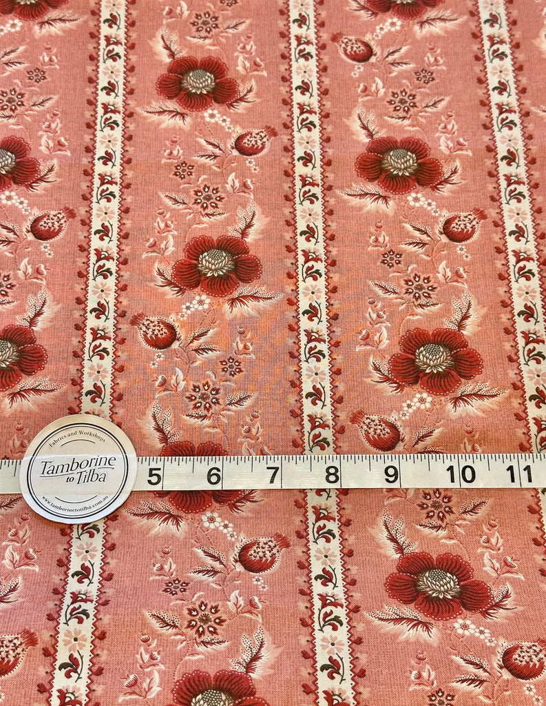 Fabric - Reproduction - (3236) Mansfield Park Blue & Red Stripe with Small Floral Motif